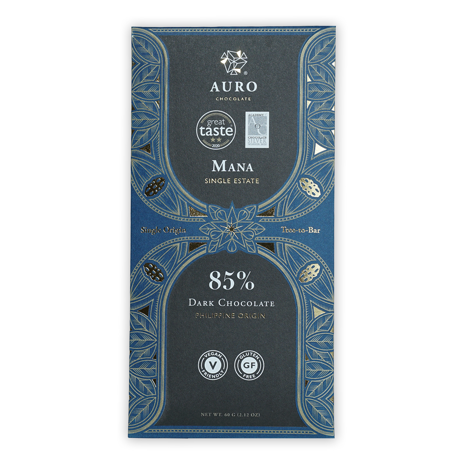 Auro ChocolateAuro Chocolate is a Filipino bean to bar chocolate company that practices sustainable harvesting of cacao which they get directly from farms in Davao Philippines. Owners Mark Ocampo and Kelly Go, originally political science majors, with no background in pastries or chocolate at all, took a trip to the Philippines where their love for small craft chocolate was born. Auro is committed to restore local heirloom varieties of Filipino cacao and showcase Filipino taste varieties and culture from the Davao region in some of their single estate chocolate bars. Auro provides support and education to its farmers to teach them organic farming and important business management fundamentals in order to improve their standards of living. Auro is globally recognized and have won awards for their chocolate. Mark and Kelly wanted their chocolate company to reflect something with gold. They believe that like gold, farmers and cacao are not given the recognition they deserve. Both gold and cacao are not fully cherished in its raw form until its been altered, that’s when people see its true value.