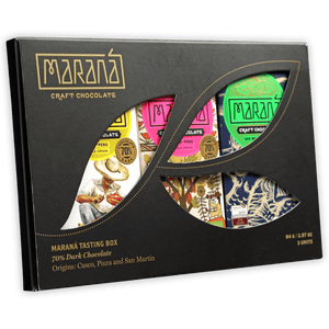 MaranáMaraná is a Peruvian chocolate company that produces bean to bar chocolate from the finest cocoa. Their selection of Peruvian cocoa comes from three regions - Piura, San Martin, and Cusco. All of their chocolate bars are made with certified 100% organic ingredients. Zulema and Giuseppe, both founders of Marana were formerly part of the corporate world for 10 years until they were looking for something else to satisfy their interests. One day while talking to Giuseppe’s aunt that lives in the USA, she mentioned that she has seen a surplus of chocolate with Peruvian cacao. That had sparked some interest to the pair and started doing research about cacao and visiting cacao farms. That’s when they discovered their passion for Peruvian chocolate. Zulema and Giuseppe are committed to helping farmers receive a better quality of life by working directly with them. They find by teaching them sustainable farming, improving their techniques for better optimization of their cacao beans, they are able to guarantee only the finest cacao beans. Marana’s packaging for their bars pay homage to Peruvian culture and the hard work cacao farmers dedicate their lives towards. Since selling their first chocolate bar in 2015, Marana has proudly received multiple awards for their bars.