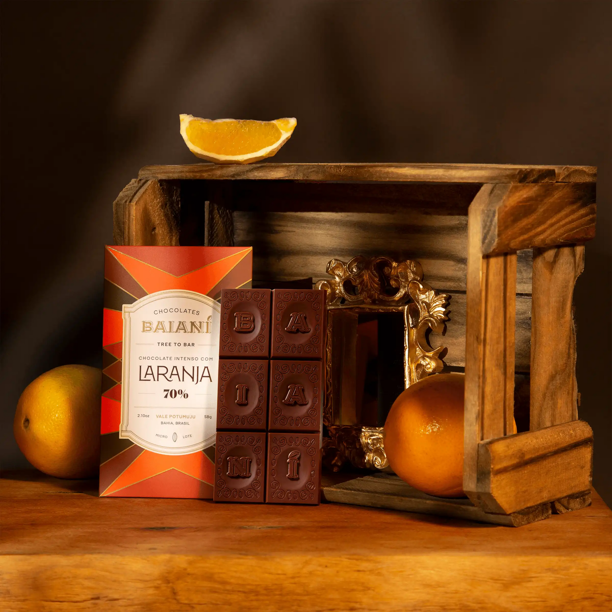 This is a great bar if you love a distinct orange flavor. The chocolate is rich and smooth, with very little bitterness or astringency. The orange comes through strongly and hides some of the nuances of the cocoa itself, but if you are looking for a very orange-y bar its great. It's a nice complement to Baianí's plain dark bars, which are some of the best Brazilian bean-to-bar chocolate.