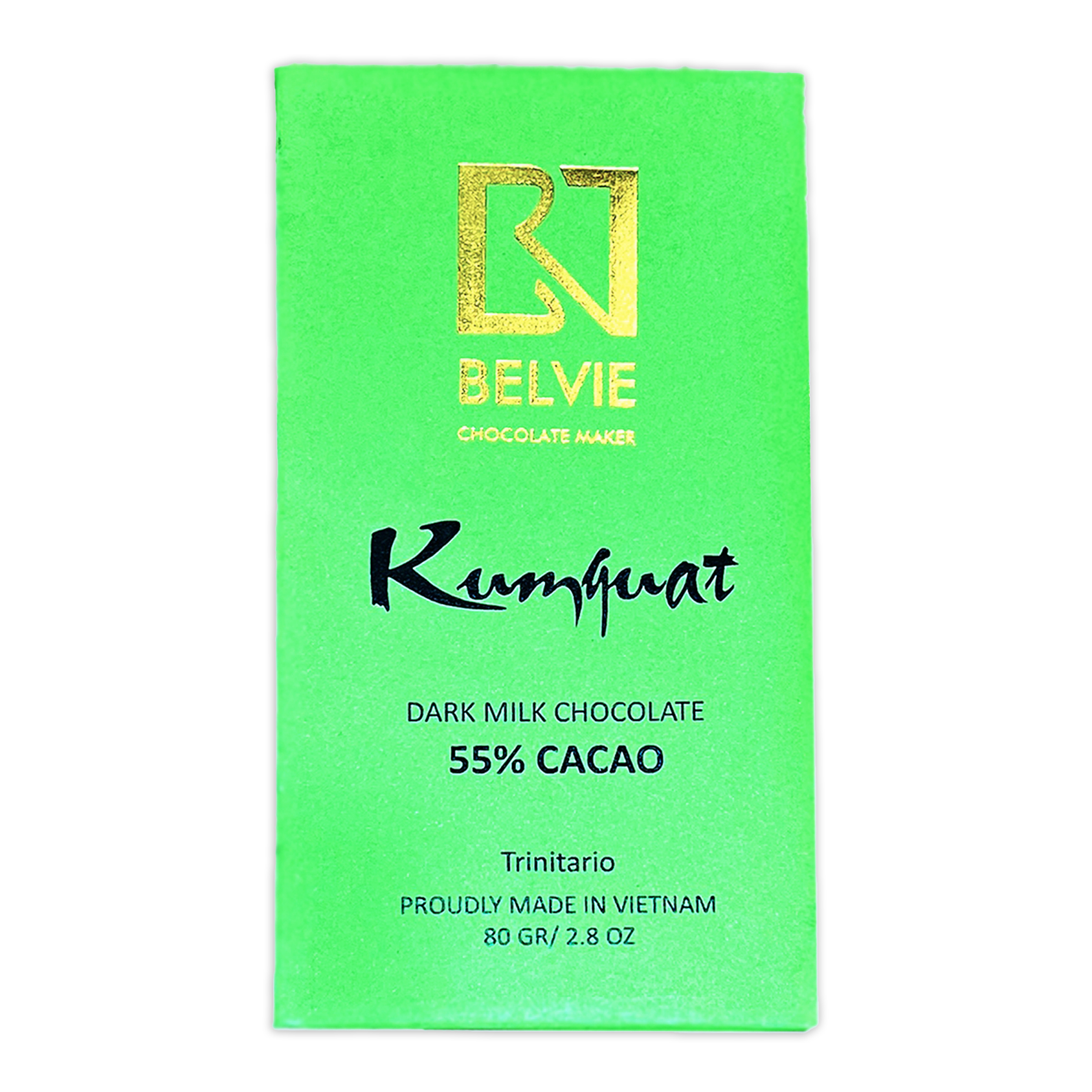 The 55% milk chocolate bar with kumquat flavor has a rich flavor, balancing the sweet and fatty taste with the characteristic aroma of kumquat. With a cocoa content of 55%, this milk chocolate bar brings a special and very Vietnamese experience.
