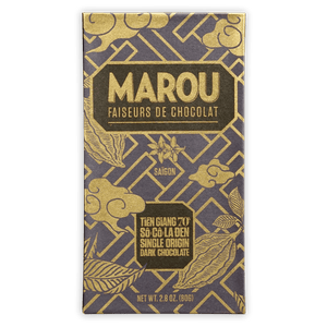 Marou ChocolateMarou Chocolat was started by two Frenchmen Samuel Maruta and Vincent Mourou in Saigon. After a camping trip in Vietnam, that left them venturing onto a cacao farm, they were sold on their next adventure, chocolate. They only had minimal everyday kitchen appliances at the time and started testing how to make chocolate in Sam’s kitchen. They work closely with farmers and slow roast the beans in small batches to get the natural flavors from its terroir and let it do all the work. They are the first bean to bar Vietnamese chocolate makers. Their bars captivate flavors from each region they receive their cacao beans from.