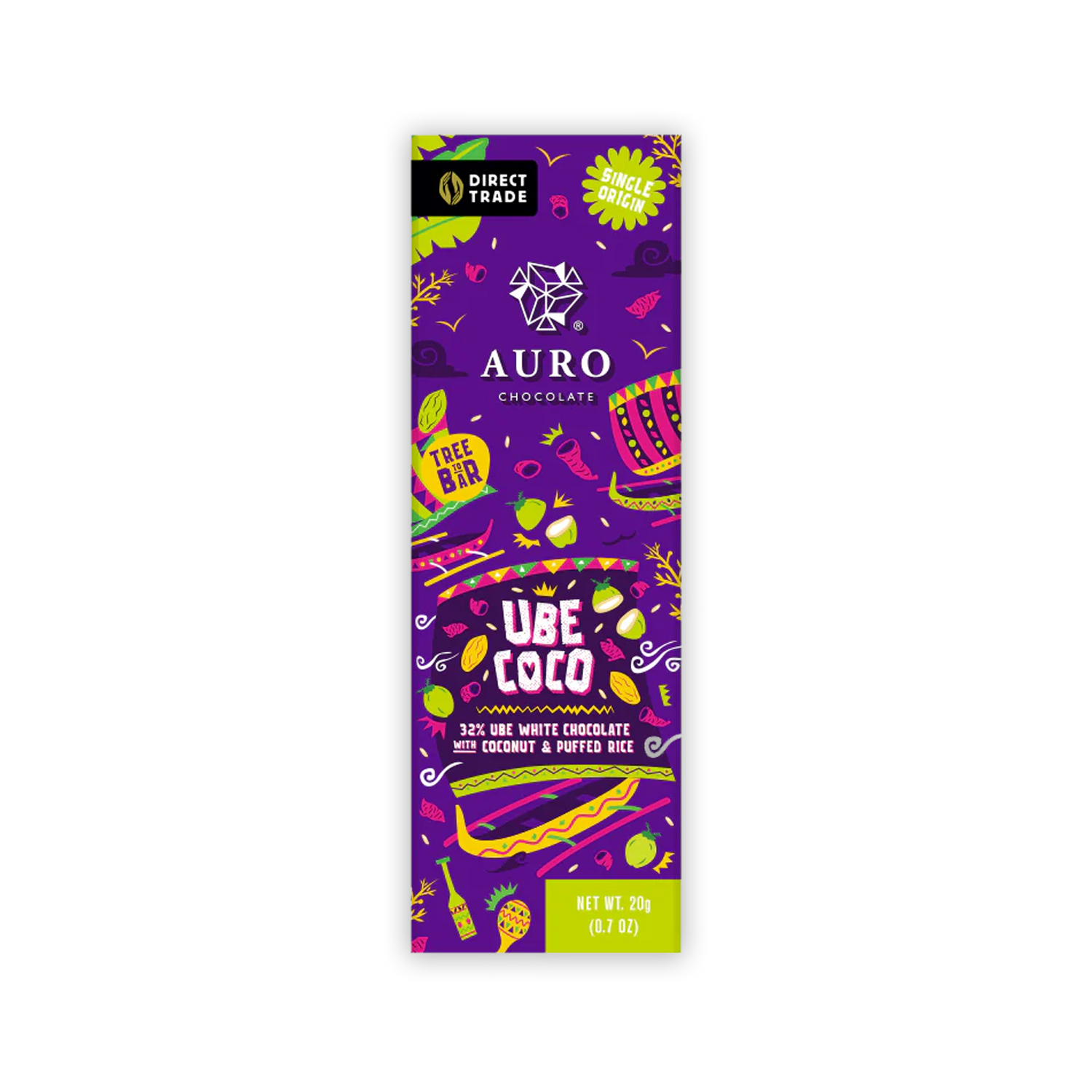 Discover a celebration of tropical flavors with their rich and creamy Ube Coco — a combination of their ube-infused single origin 32% white chocolate mixed with desiccated coconut and crispy puffed rice.