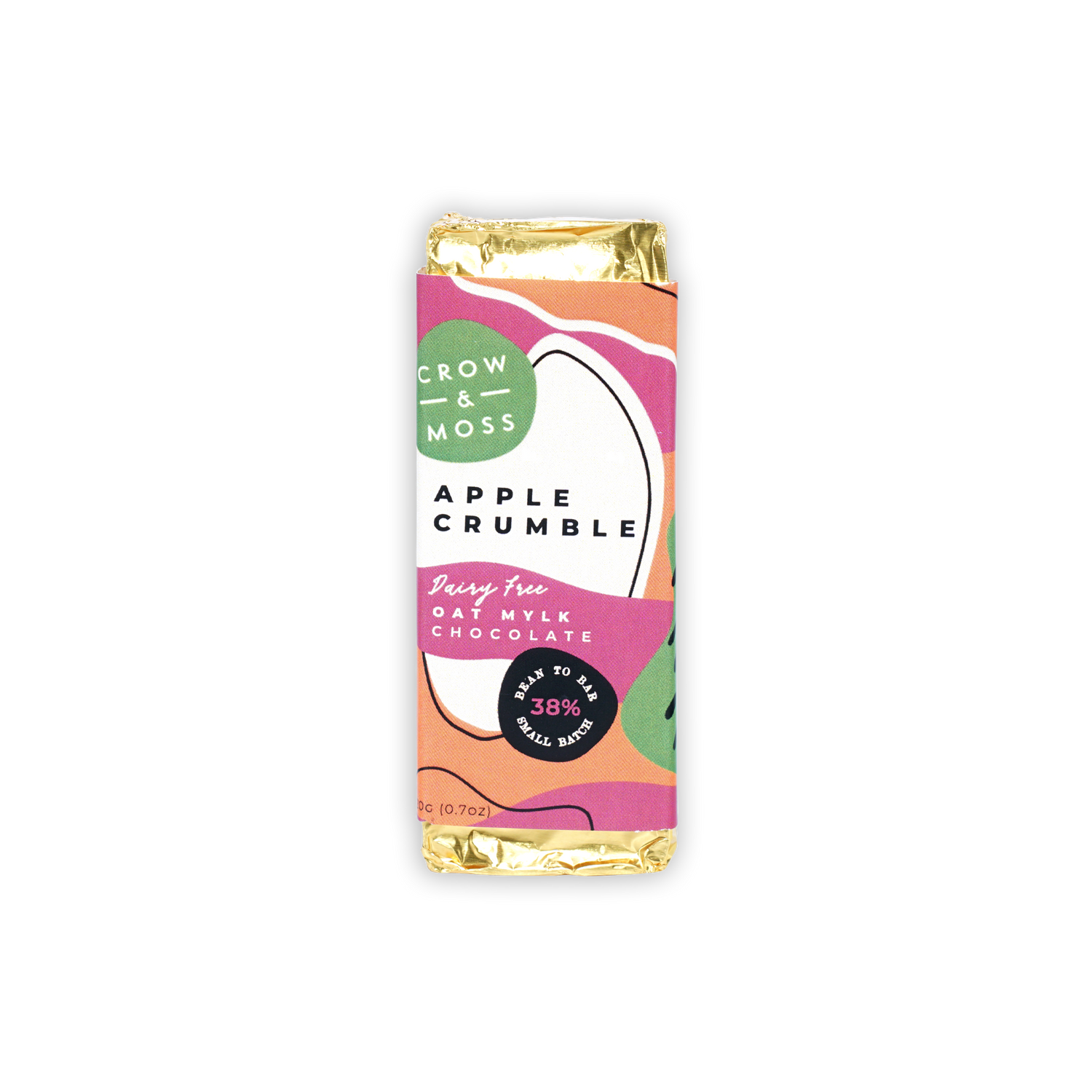 Inspired by the world's most comforting dessert, this creamy oat milk chocolate makes everything feel just a little more right with the world. Laced with cinnamon spiced apples, the bar is finished off with a crunchy oat topping sweetened with honey from our very own Crow & Moss bee hives.