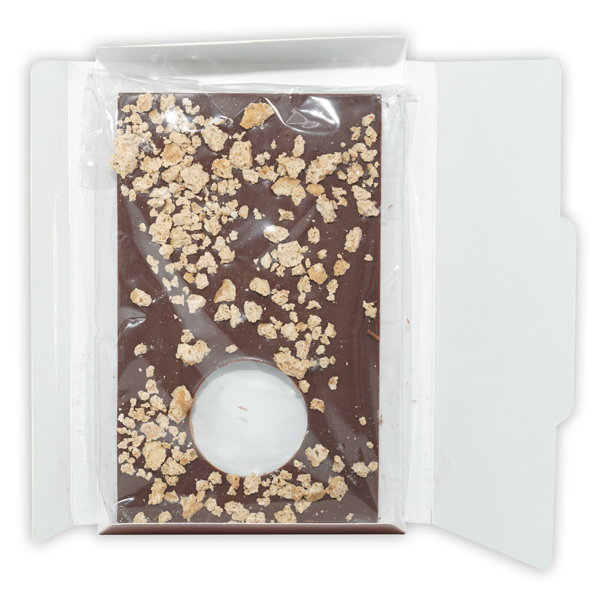 A delicious fusion of silky 40% milk chocolate with coffee, embellished with cookie bits.