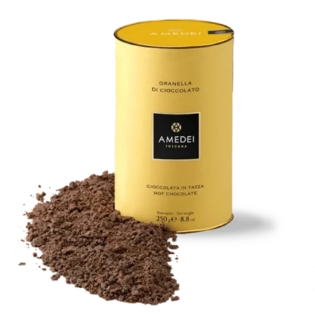 Amedei rich drinking chocolate is 63% flakes of chocolate with the addition of ground hazelnuts and almonds to make this a flavorsome hot drinking chocolate mix. Add warm milk, whisk, and serve. Amedei's purity of ingredients and process delivers a hot chocolate that will win over your palate.