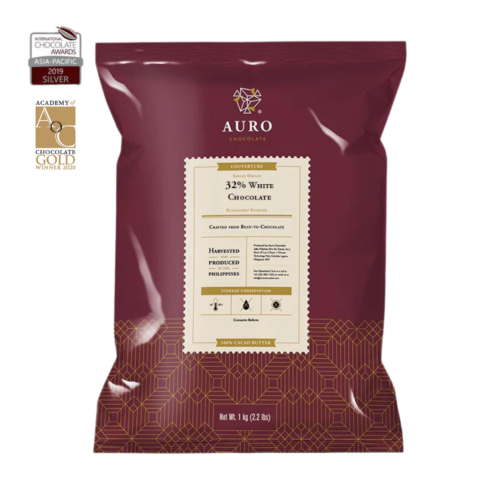 Discover Auro's award-winning couverture 32% white chocolate made from freshly pressed 100% natural cacao butter crafted from cacao beans sourced directly from Davao farmers.