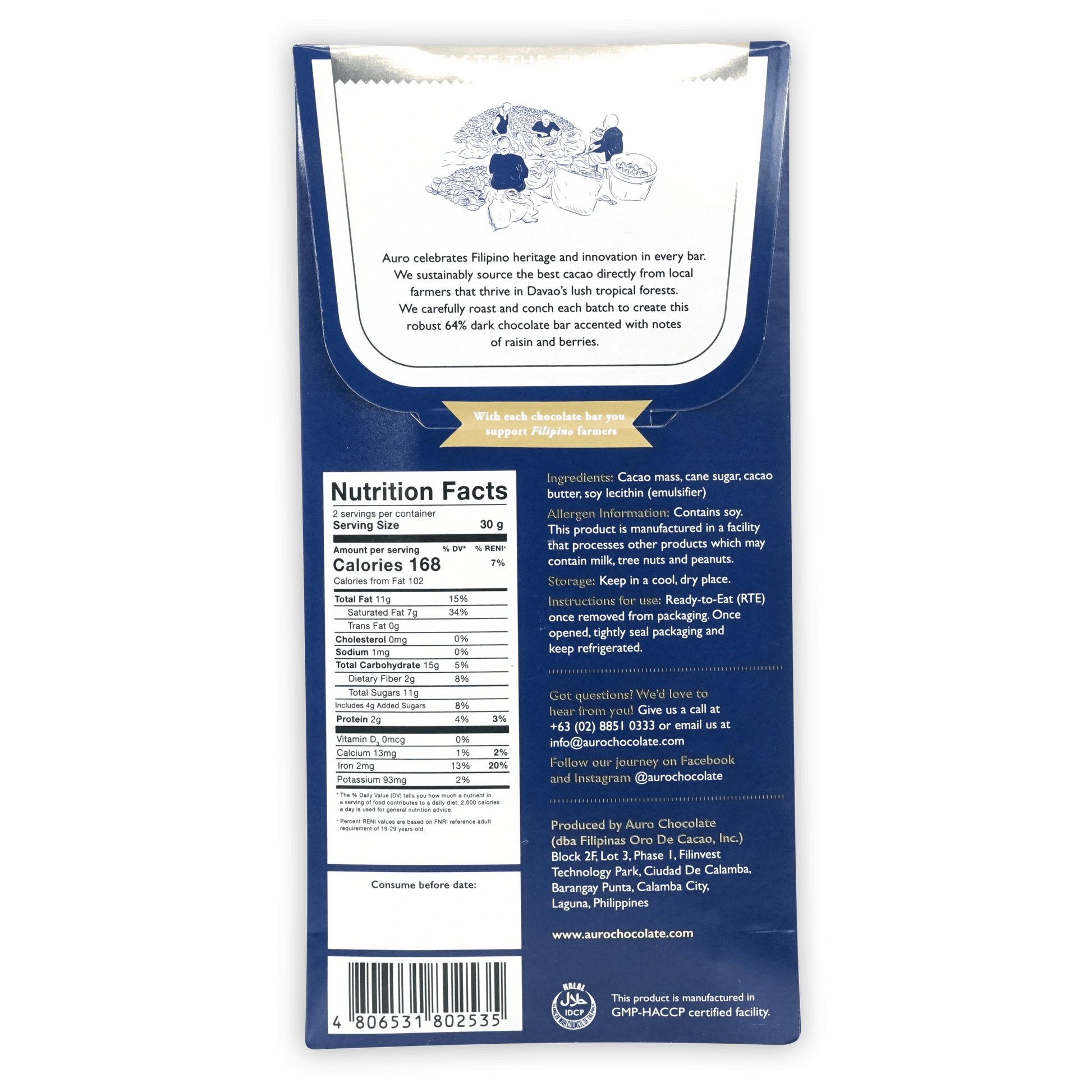 Auro Dark Chocolate 64% (Best By: 12/31/25)