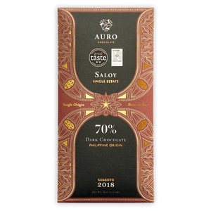 Auro ChocolateAuro Chocolate is a Filipino bean to bar chocolate company that practices sustainable harvesting of cacao which they get directly from farms in Davao Philippines. Owners Mark Ocampo and Kelly Go, originally political science majors, with no background in pastries or chocolate at all, took a trip to the Philippines where their love for small craft chocolate was born. Auro is committed to restore local heirloom varieties of Filipino cacao and showcase Filipino taste varieties and culture from the Davao region in some of their single estate chocolate bars. Auro provides support and education to its farmers to teach them organic farming and important business management fundamentals in order to improve their standards of living. Auro is globally recognized and have won awards for their chocolate. Mark and Kelly wanted their chocolate company to reflect something with gold. They believe that like gold, farmers and cacao are not given the recognition they deserve. Both gold and cacao are not fully cherished in its raw form until its been altered, that’s when people see its true value.