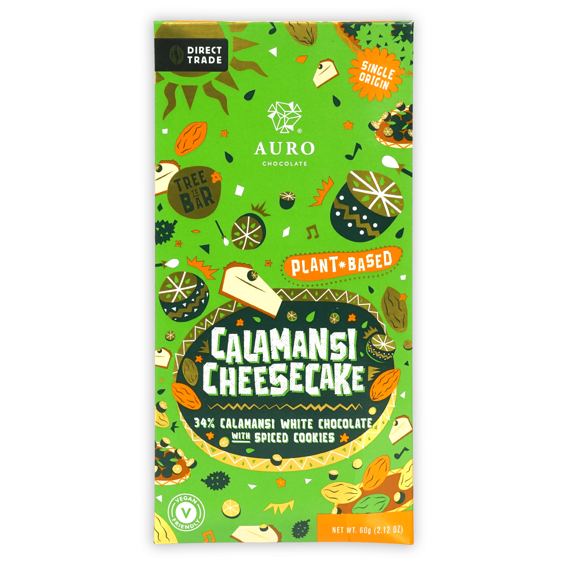 Discover a celebration of tropical flavors with Auro's refreshing Calamansi Cheesecake; a combination of their calamansi-infused plant-based 34% white chocolate mixed with honey and spiced cookie bits. Auro's design is inspired by Davao's Kadayawan Festival which pays homage to a plentiful harvest. Experience bounty in every bite.