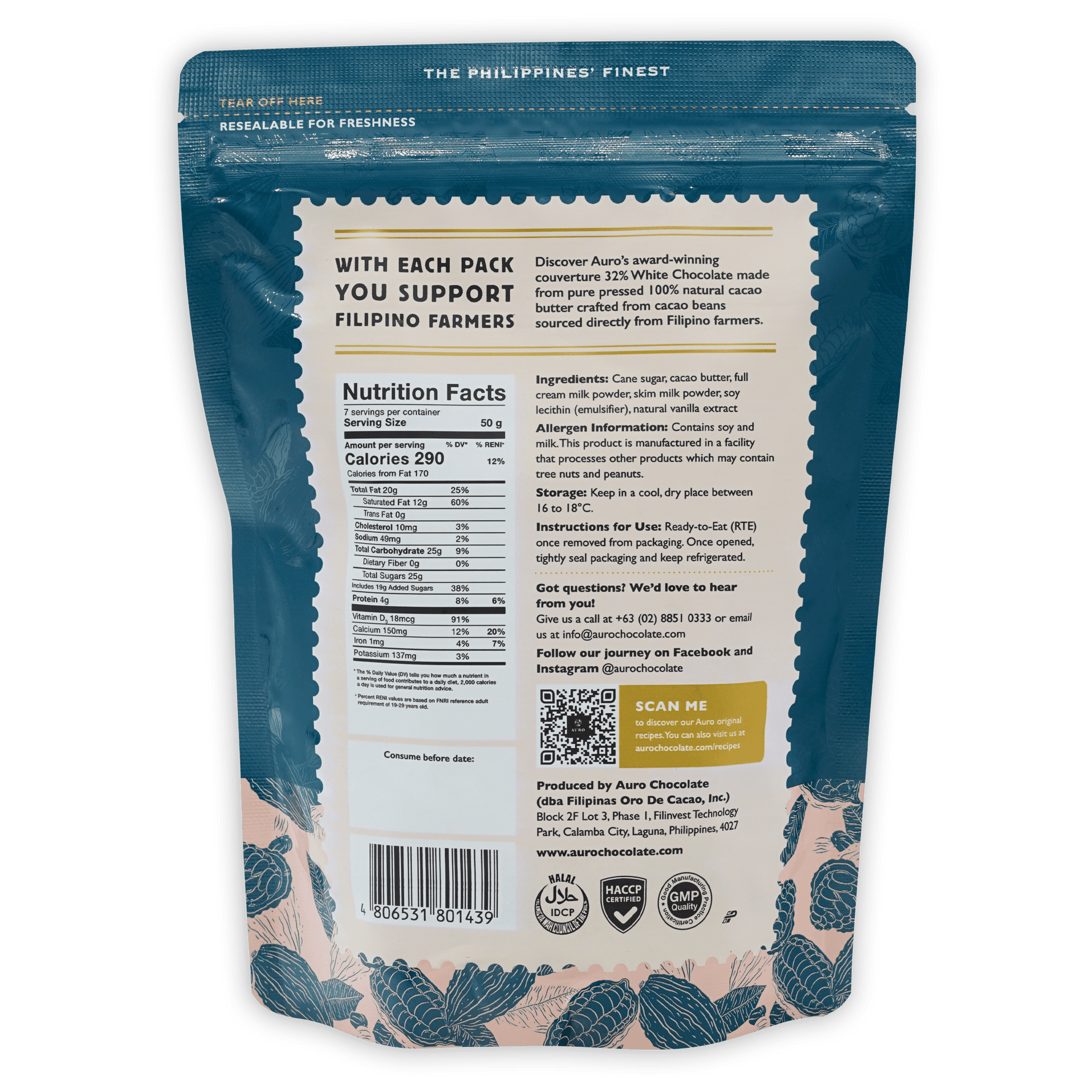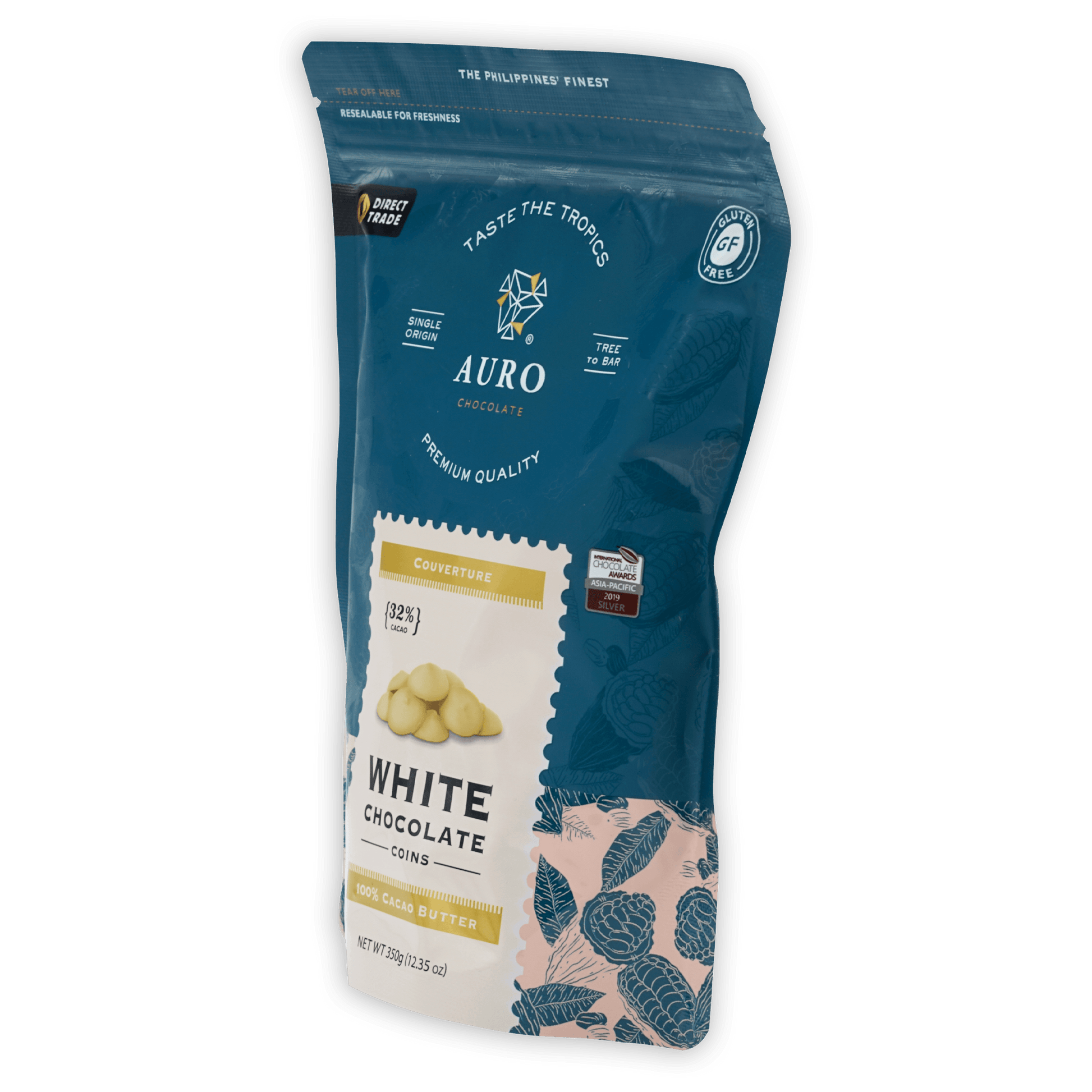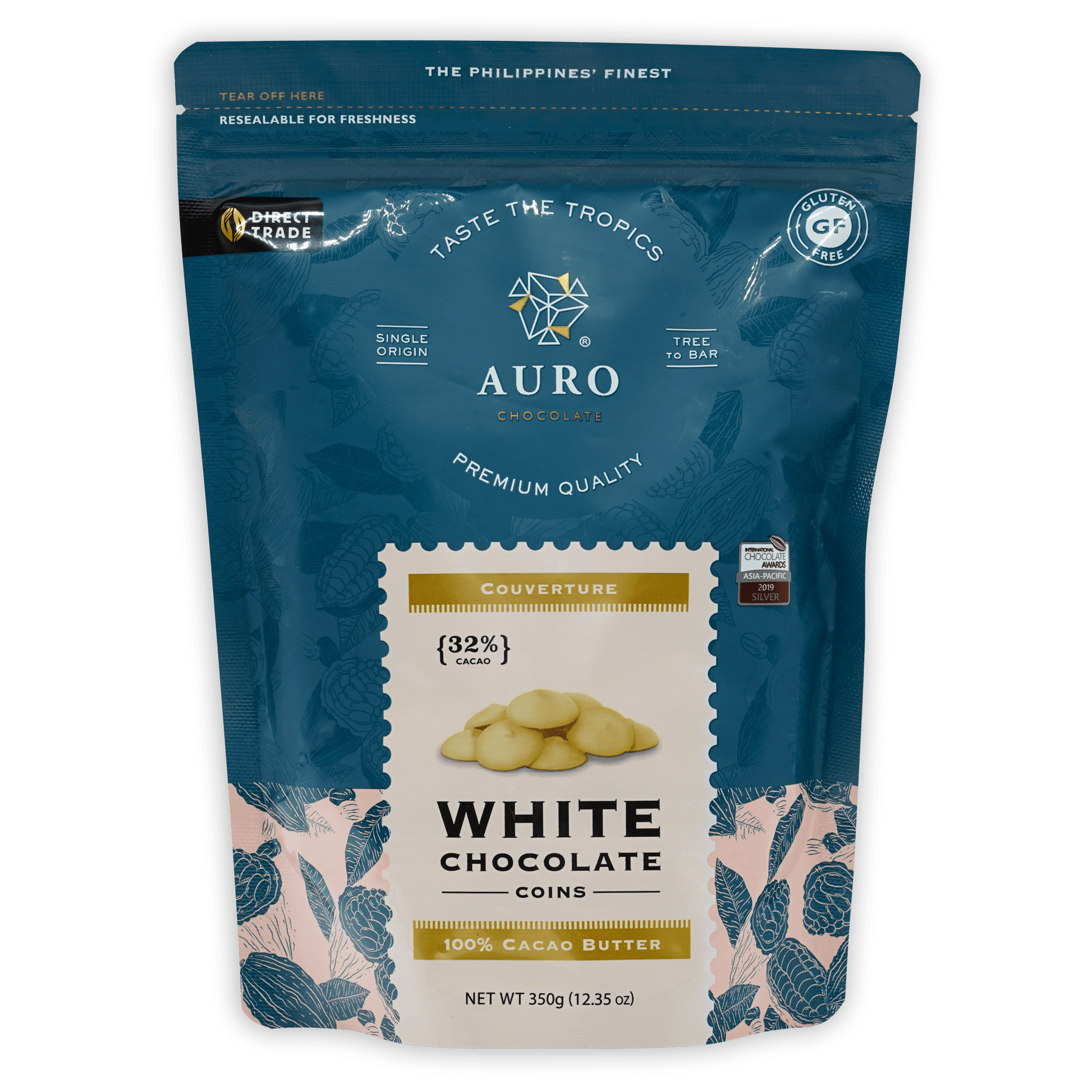 Discover Auro's award-winning couverture 32% white chocolate made from freshly pressed 100% natural cacao butter crafted from cacao beans sourced directly from Davao farmers.