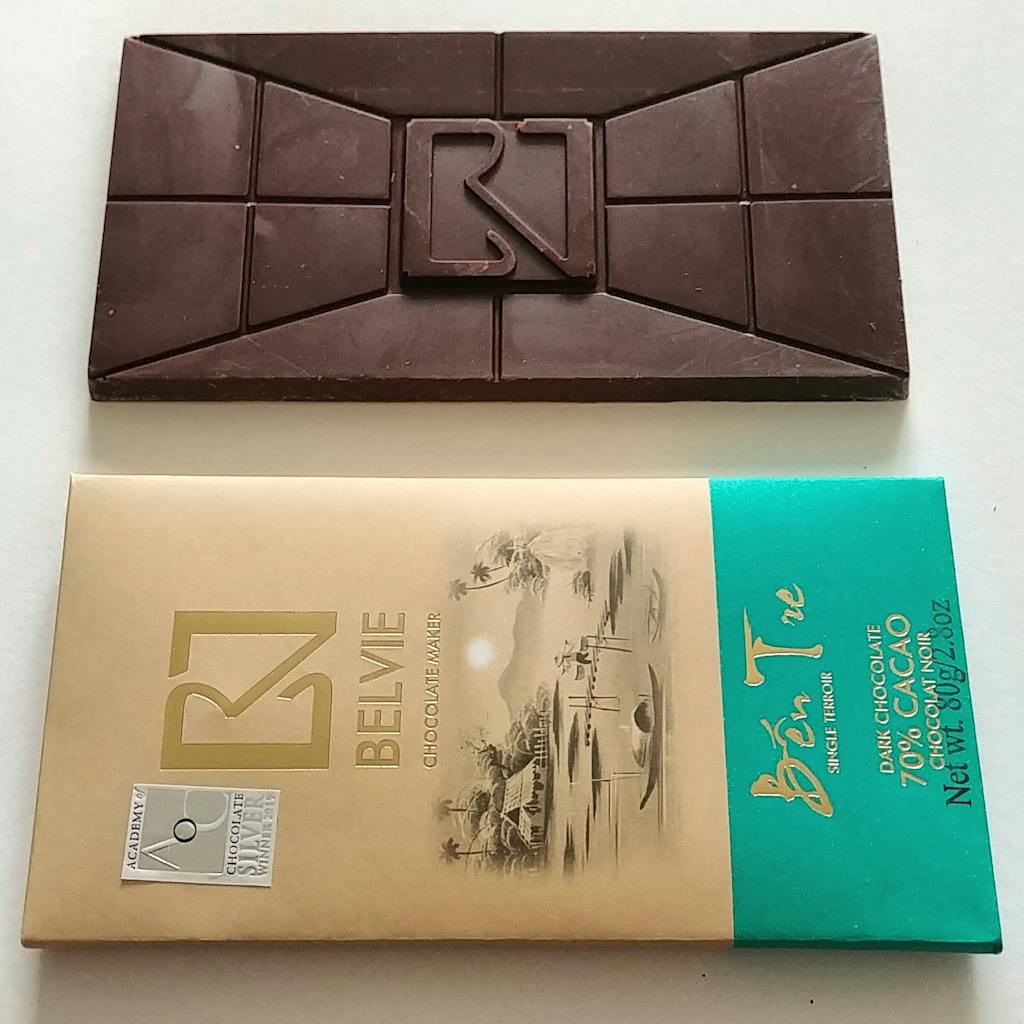 Belvie ChocolateBased in Vietnam, Belvie Chocolate is a bean to bar maker that handcrafts their chocolate bars with Belgian techniques. They source cacao from all over Vietnam, then stone grind and produce their chocolate in small batches. Their award winning chocolate also contributes to the preservation of cacao trees in Vietnam. They take the husks of the cacao as fertilizer for the trees to help maintain a green environment. Belvie uses Trinitario cacao beans only from local farmers to help restore cacao trees throughout Vietnam and mostly importantly, to help support the farmers.
