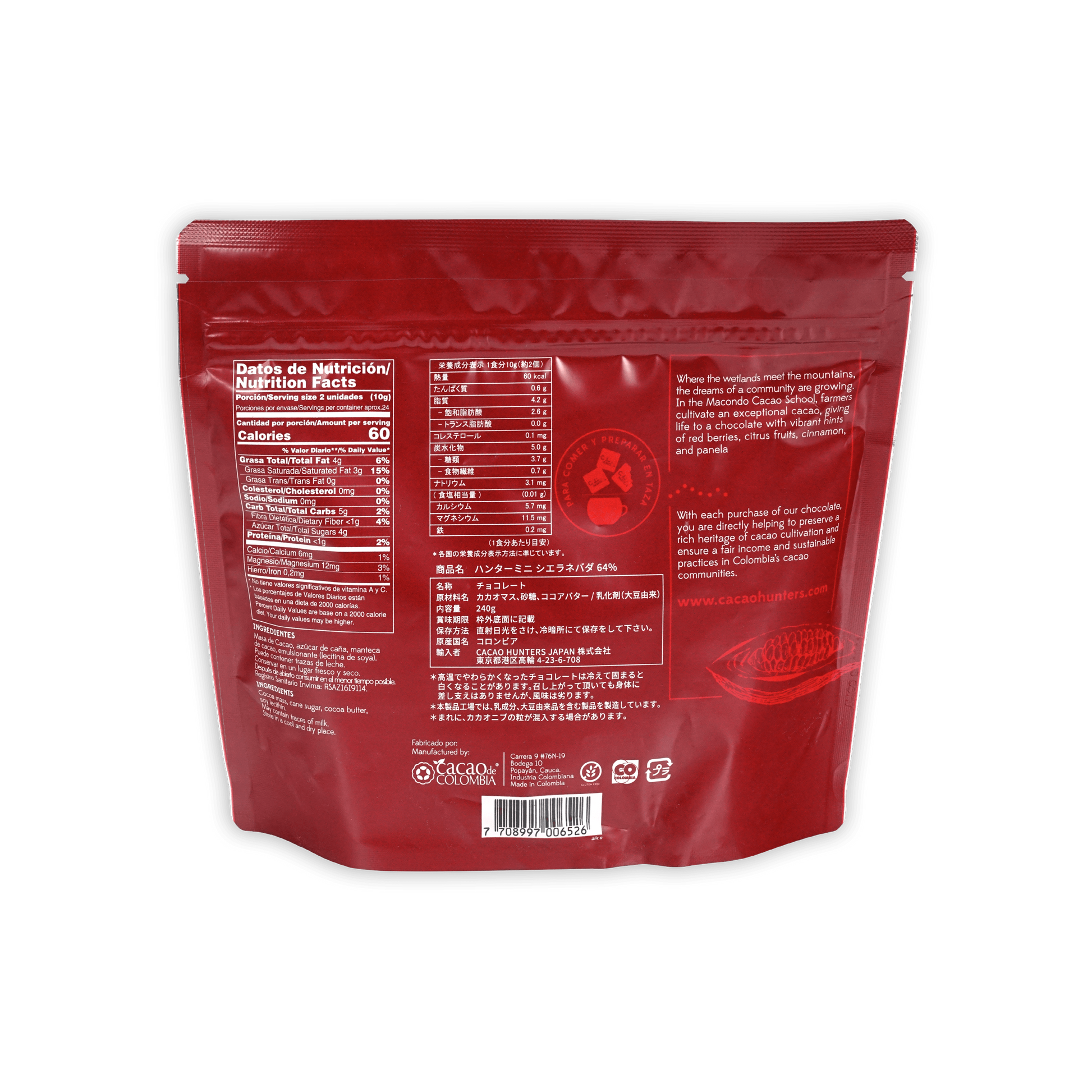 Cacao HuntersCacao Hunters transforms cacao beans from different corners of Colombia into single terroir chocolate bars. They promote and encourage farmers dedicated to producing wild and heirloom cacao varieties, and help them with their farming practices to improve the fine flavor cacao. Cacao Hunters sustainable practices go beyond producing the best Colombian chocolate by preserving rare varieties of cocoa production. Cacao Hunters, among other Colombian makers have helped change the lifestyle and generate a better quality of life for many people including farmers. In the past, Colombia was ridden with coca farms, creating a harsh and dangerous society. The government decided to implement cacao beans to create a better and safer economy, warding away the crime and drugs into the country. The cacao industry has struggled to take off at first because there has not been much attention to the cacao producers and focusing on the quality. Cacao Hunters mission has helped transform the Colombian cacao industry, making it one of the top producers.Cacao Hunters value the indigenous people of the country that help preserve the quality and nature of their hard work that goes into the cacao farming. They are part of an ongoing research to develop new bars while highlighting new flavor profiles from cacao all over the country.