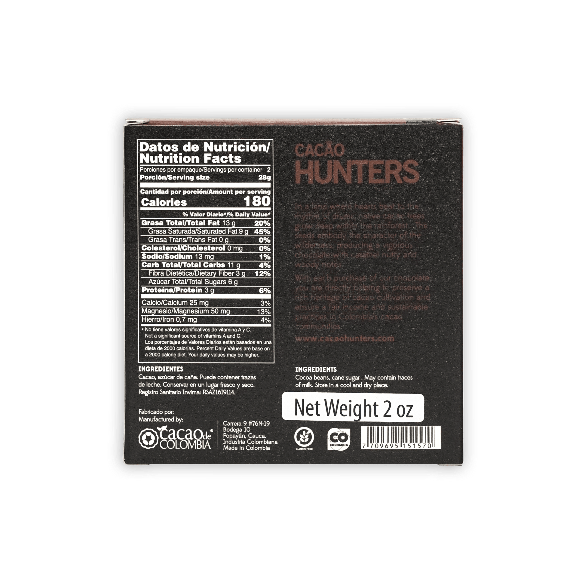 Cacao HuntersCacao Hunters transforms cacao beans from different corners of Colombia into single terroir chocolate bars. They promote and encourage farmers dedicated to producing wild and heirloom cacao varieties, and help them with their farming practices to improve the fine flavor cacao. Cacao Hunters sustainable practices go beyond producing the best Colombian chocolate by preserving rare varieties of cocoa production. Cacao Hunters, among other Colombian makers have helped change the lifestyle and generate a better quality of life for many people including farmers. In the past, Colombia was ridden with coca farms, creating a harsh and dangerous society. The government decided to implement cacao beans to create a better and safer economy, warding away the crime and drugs into the country. The cacao industry has struggled to take off at first because there has not been much attention to the cacao producers and focusing on the quality. Cacao Hunters mission has helped transform the Colombian cacao industry, making it one of the top producers.Cacao Hunters value the indigenous people of the country that help preserve the quality and nature of their hard work that goes into the cacao farming. They are part of an ongoing research to develop new bars while highlighting new flavor profiles from cacao all over the country.