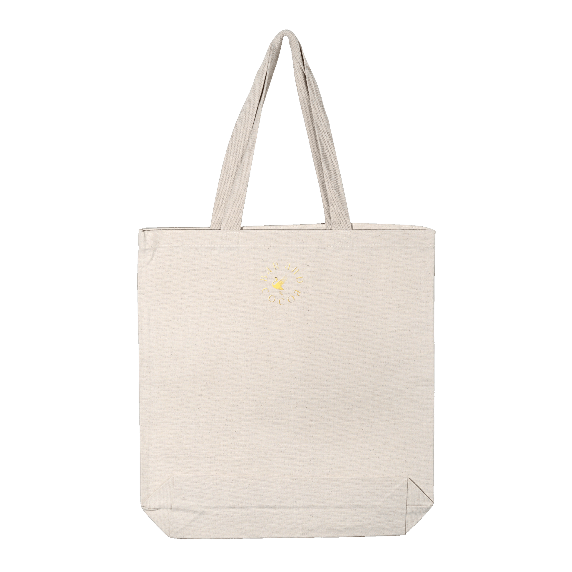 These foldable and lightweight canvas tote bags have have a gusseted bottom and wide open mouth. Making it easy to load and unload your belongings.