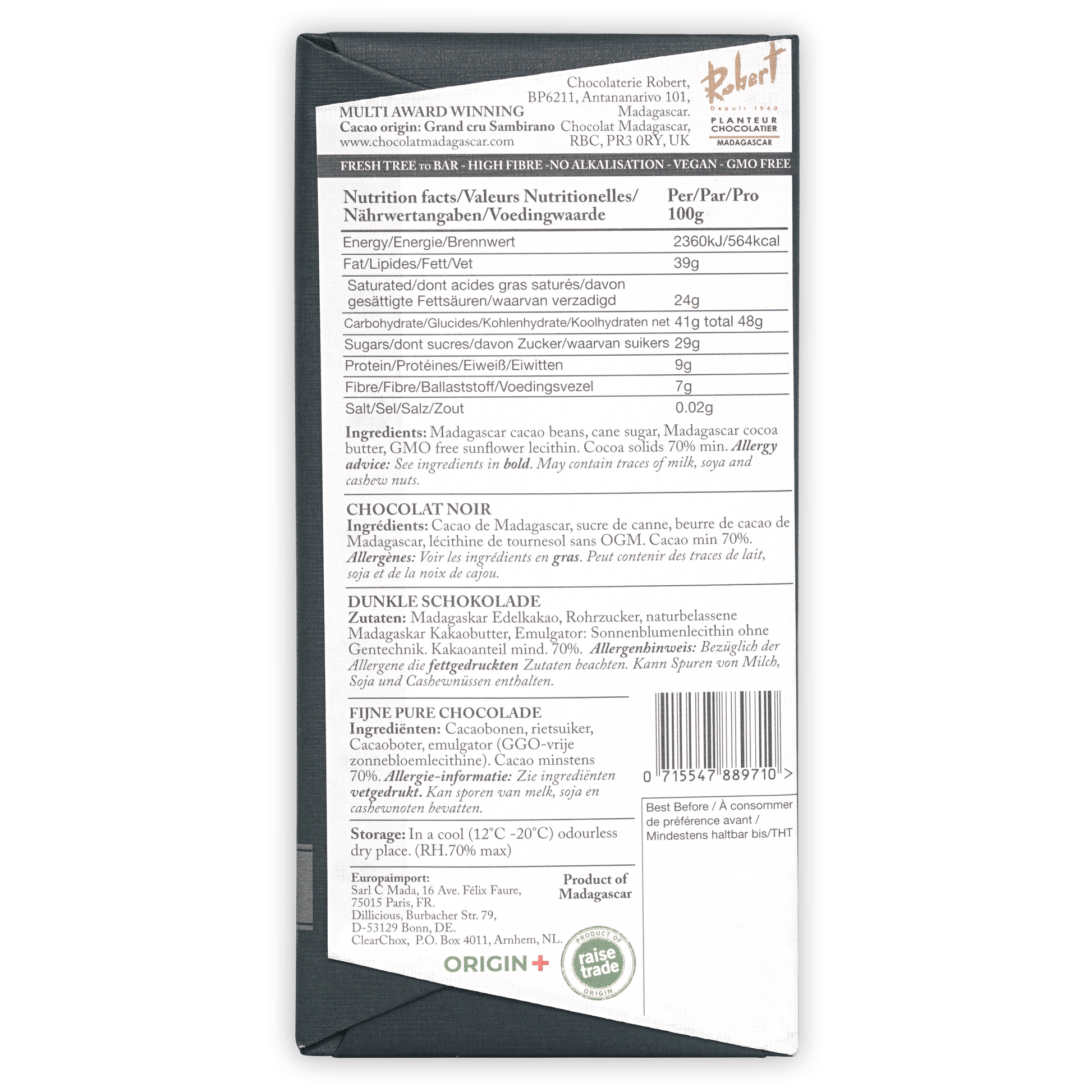 Chocolat MadagascarChocolat Madagascar is a tree to bar chocolate maker by Chocolaterie Robert Robert has been making chocolate from local beans since 1940. They grow fine cacao in north west and on the east coast of Madagascar, located near where French settlers first introduced cacao to the island. Their factories are close to the cacao plantations, therefore are unique in that they produce fresh chocolate within days. The cacao trees provide a eco-sustainable haven for the rain forest and animals in Madagascar. They have won over 30 different awards from different chocolate contest all over the world.