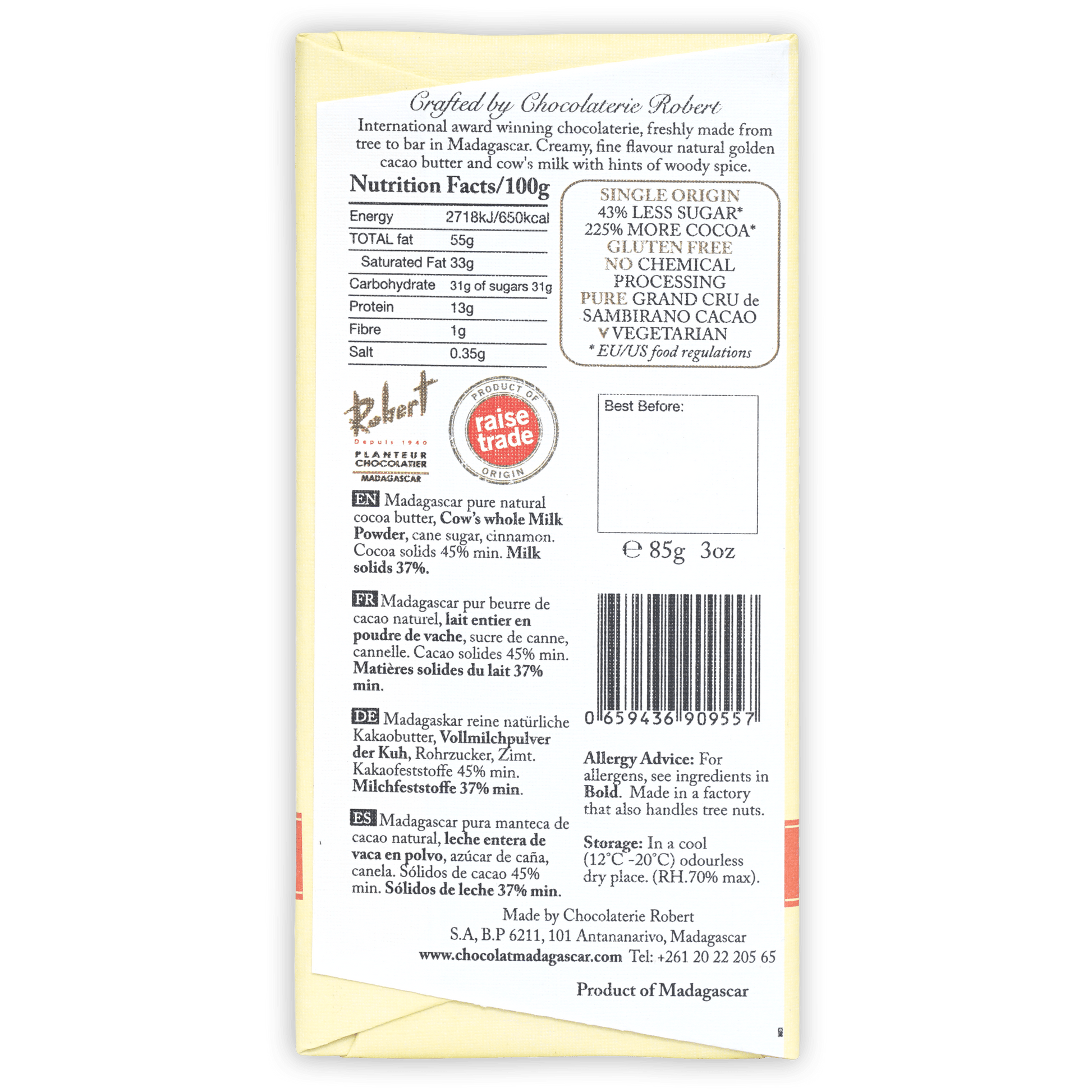 Chocolat Madagascar White Chocolate w/ Cinnamon 45%