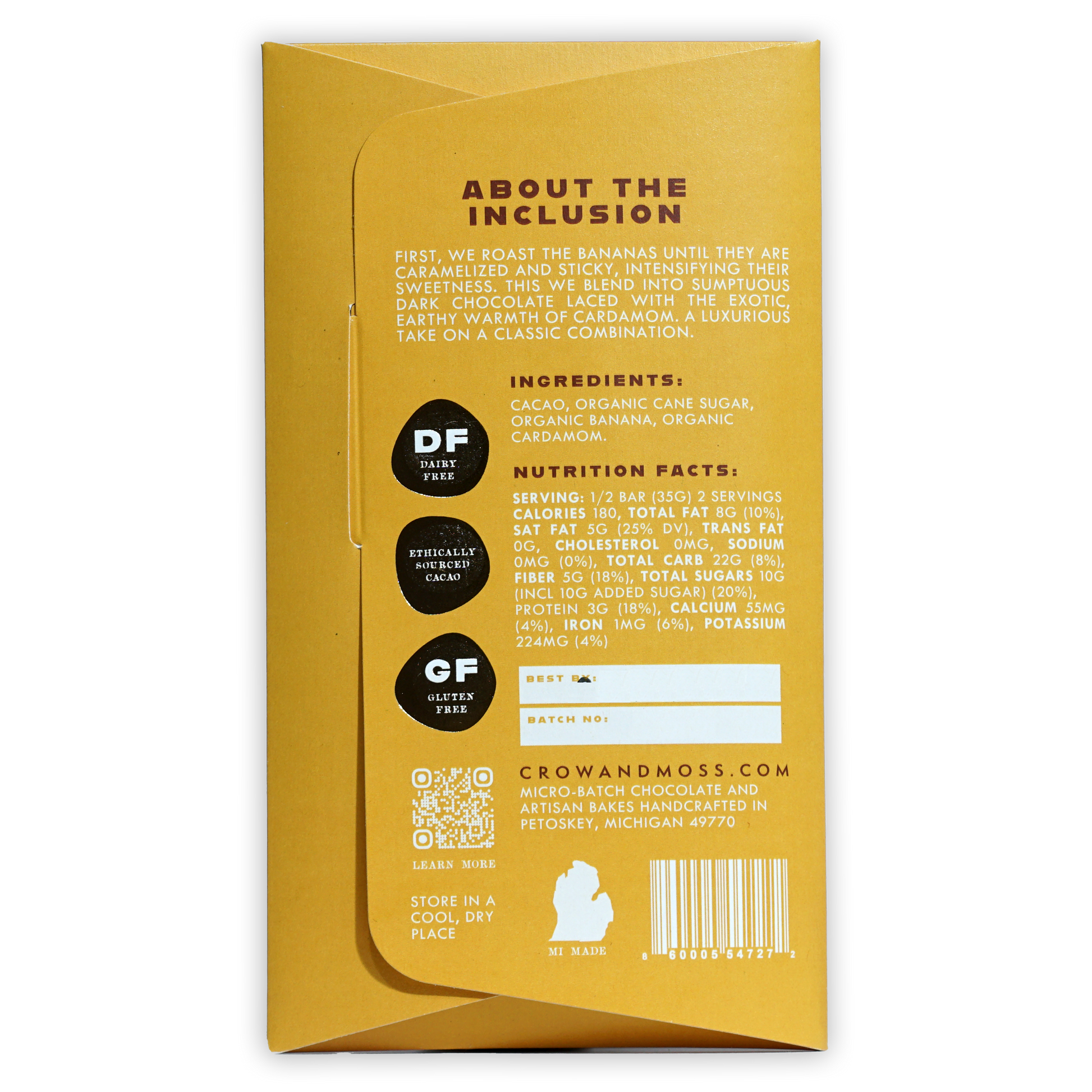 Ingredients: cacao blend, organic cane sugar, organic banana, organic cardamom