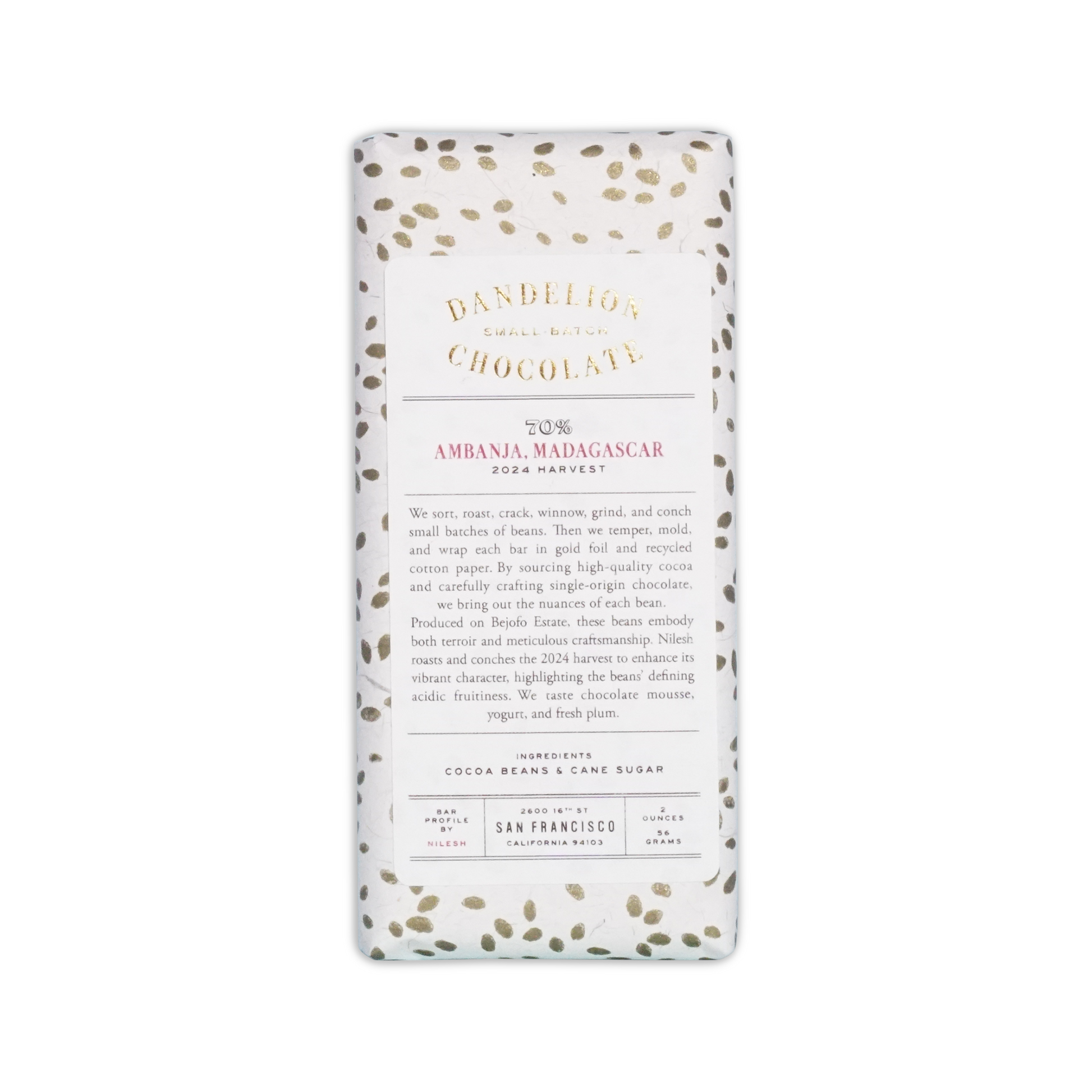 Dandelion ChocolateDandelion Chocolate is a San Francisco-based maker that uses only two ingredients: cacao and sugar. Most of their bars are held at 70% cacao, which highlights the natural flavor differences between origins. Founded by Todd Masonis and Cameron Ring, Dandelion has become one of the most recognized names in American craft chocolate. A strong gift for anyone who wants to explore how origin shapes chocolate flavor.