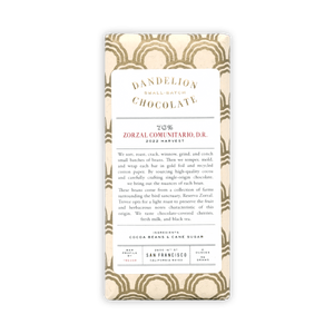 Maker Dandelion ChocolateDandelion is a small batch chocolate maker in San Francisco. Todd and Cameron, the founders have maintained an uncompromising quality with their sourcing, processing, and quality to produce great tasting bars. You'll notice that the majority of their bars are 70% with is done on purpose, so you can taste the unique difference each cacao from different countries have to offer. Both Todd and Cameron were tech geniuses located in Silicon Valley, where they started building their own chocolate equipment in their basement. Right in the middle of the craft chocolate movement starting to take over the country, they decided to tackle the adventure for themselves. Todd and Cameron wanted to produce high quality chocolate bars using only simple ingredients. Today, Dandelion produces over 12,000 bars monthly, and it’s still not enough to meet the demand for this great chocolate maker. Dandelion’s shop also boast wonderful variety of baked goods, hot chocolate and even daily tours of their chocolate factory.