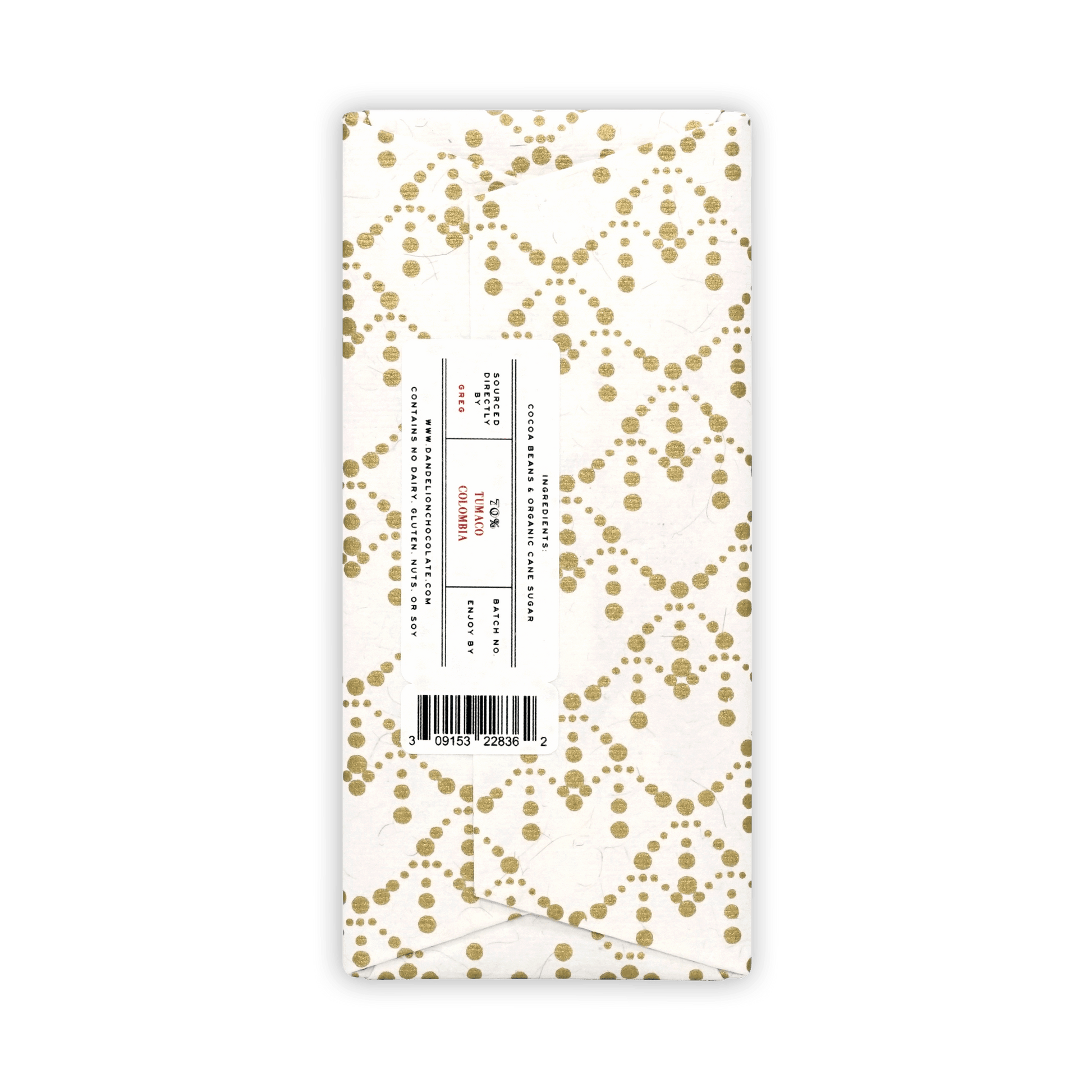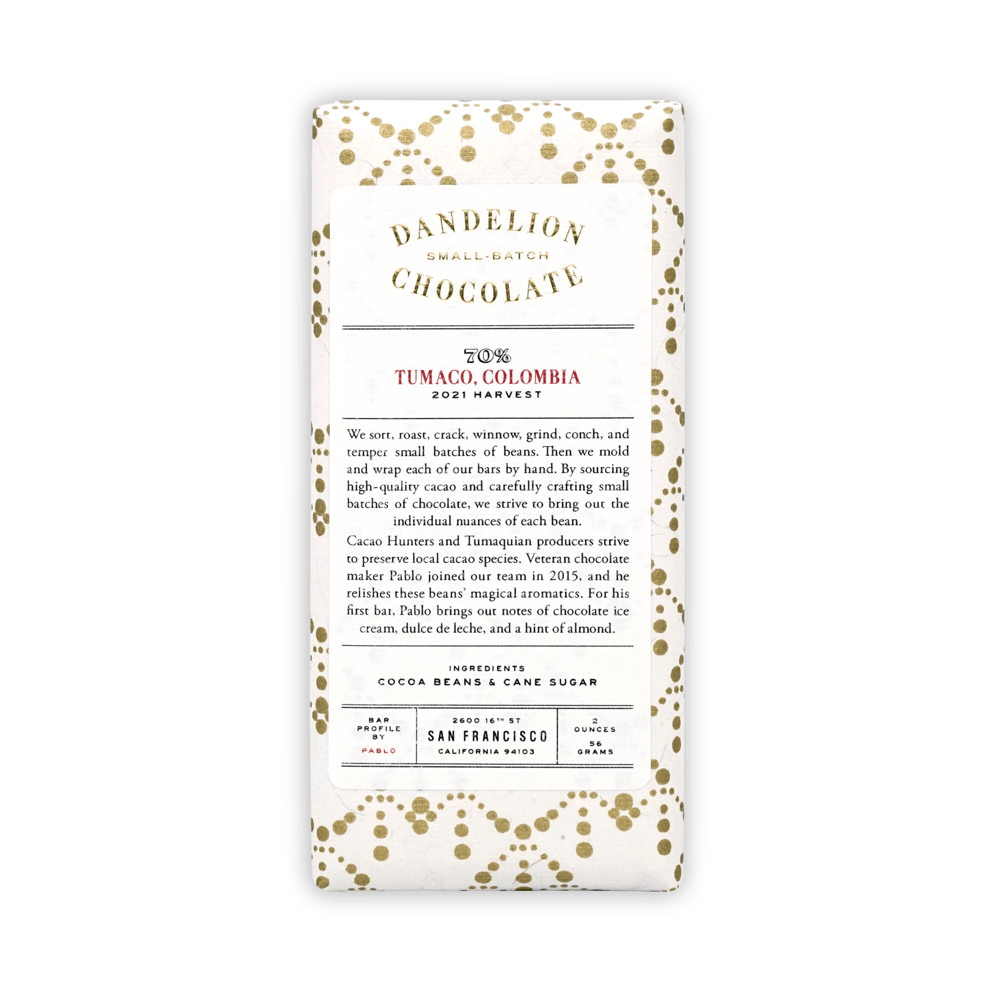 These beans come from the Tumaco region of Colombia with the help of two organizations. Cacao de Colombia encourages local cacao diversity by working with farmers to cultivate regional cacao, and then they buy their beans to ferment and dry. Uncommon Cacao connects the beans with chocolate makers willing to pay a premium for high-quality beans.