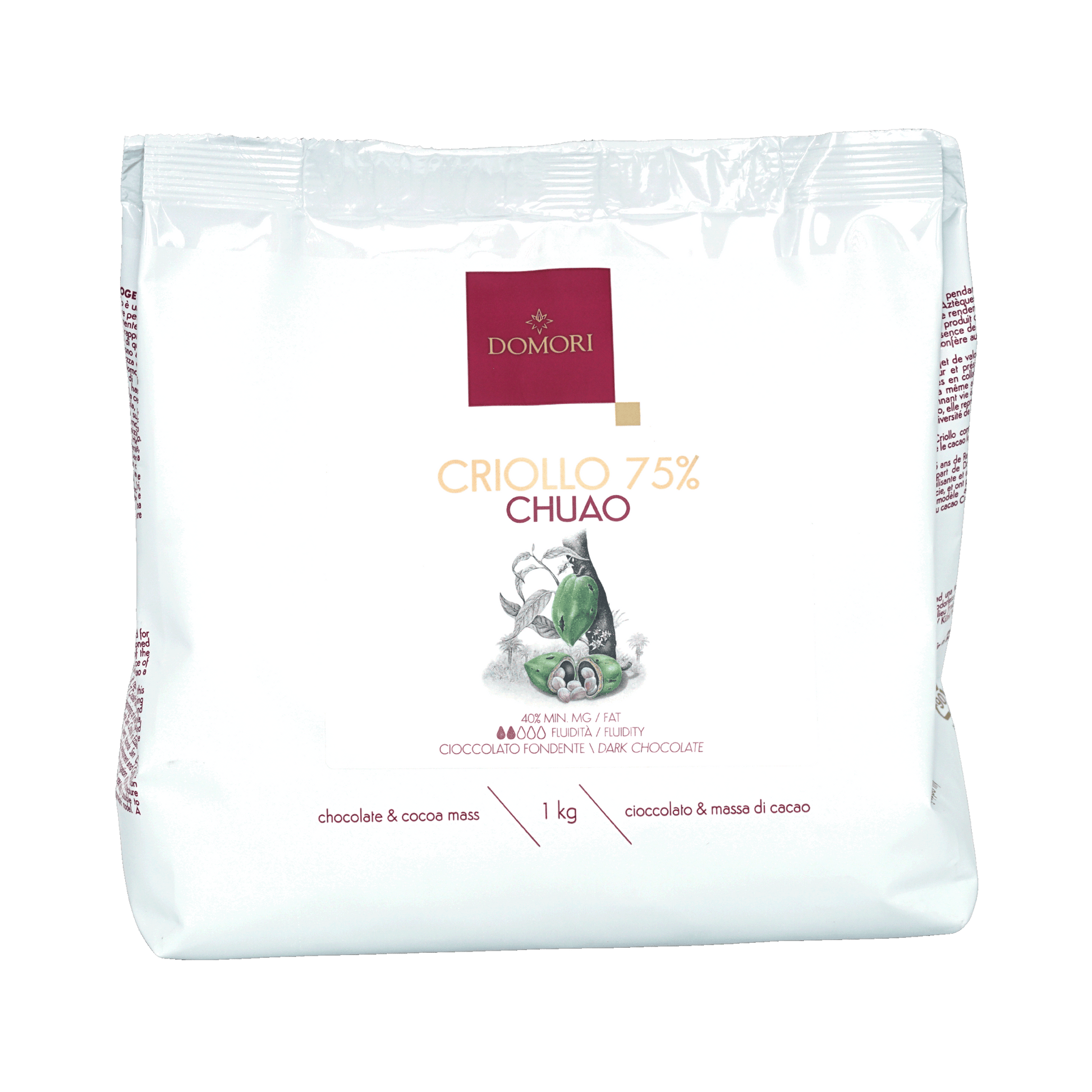 Chocolate drops for home confectionery with Criollo cocoa. The finest cocoa directly to your home to offer you the best raw material for your recipes. The convenient 1 kg bag allows the creation of exquisite desserts, with a unique aroma and roundness!