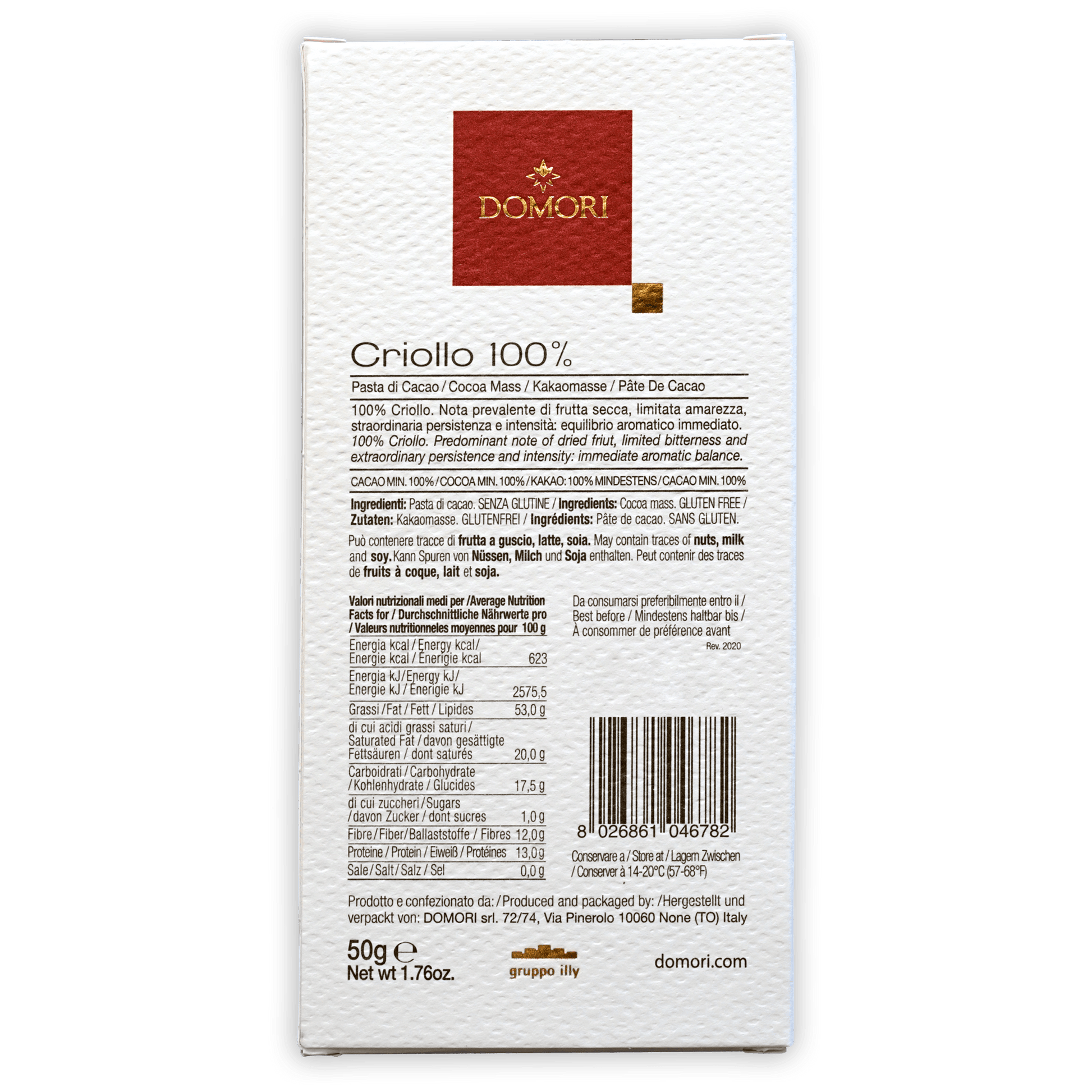 A bar of Criollo cocoa in a new format to be enjoyed! Characterized by delicate notes of dried fruit and a slight bitterness is the perfect choice for who love to discover the authentic nature of cocoa: a sugar-free chocolate! Do not miss it for a unique tasting experience!