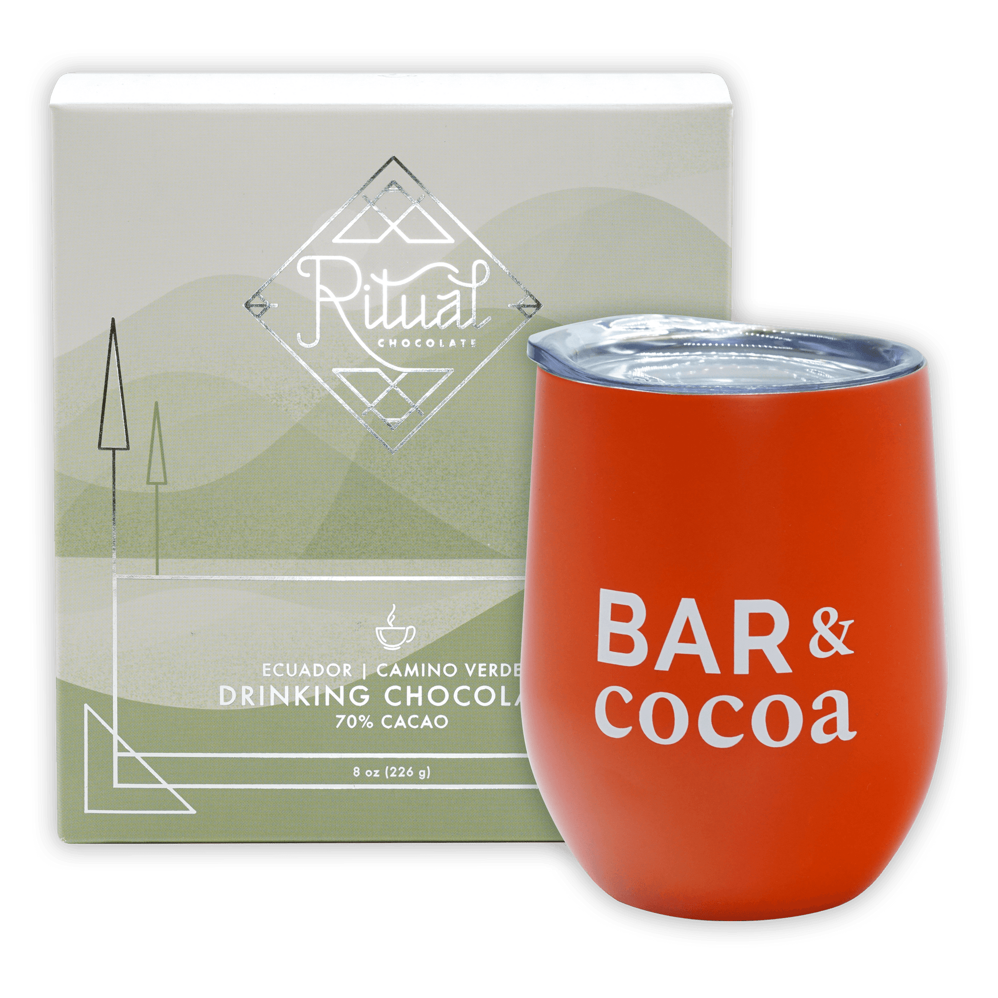 We've paired our favorites with our Bar And Cocoa stainless steel tumbler that will keep your chocolate drink warm, all winter long.
