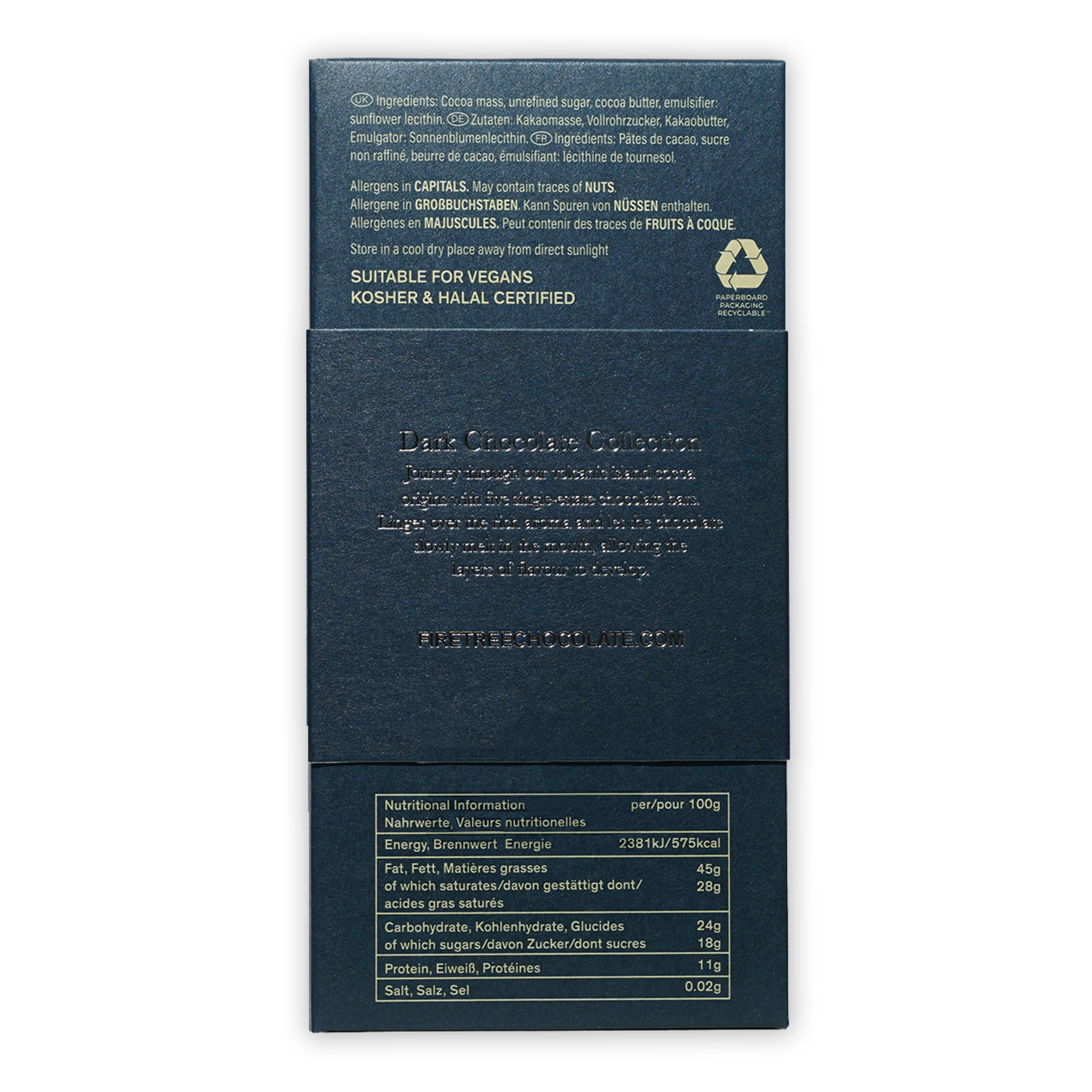 FiretreeFiretree Chocolate is dedicated to crafting rare, single estate chocolate with a true sense of place. They source their cocoa from small, remote volcanic islands in the South Pacific and Madagascar, where the mineral-rich soil creates some of the most distinctive taste notes in the world. The name “Firetree” comes from the cocoa tree’s flame-colored pods, and from its base in Cambridgeshire, England, the company follows a meticulous bean-to-bar process to preserve each origin’s character. Committed to fairness and sustainability, Firetree works directly with farmers or their co-ops, paying premiums that support communities and protect landscapes.