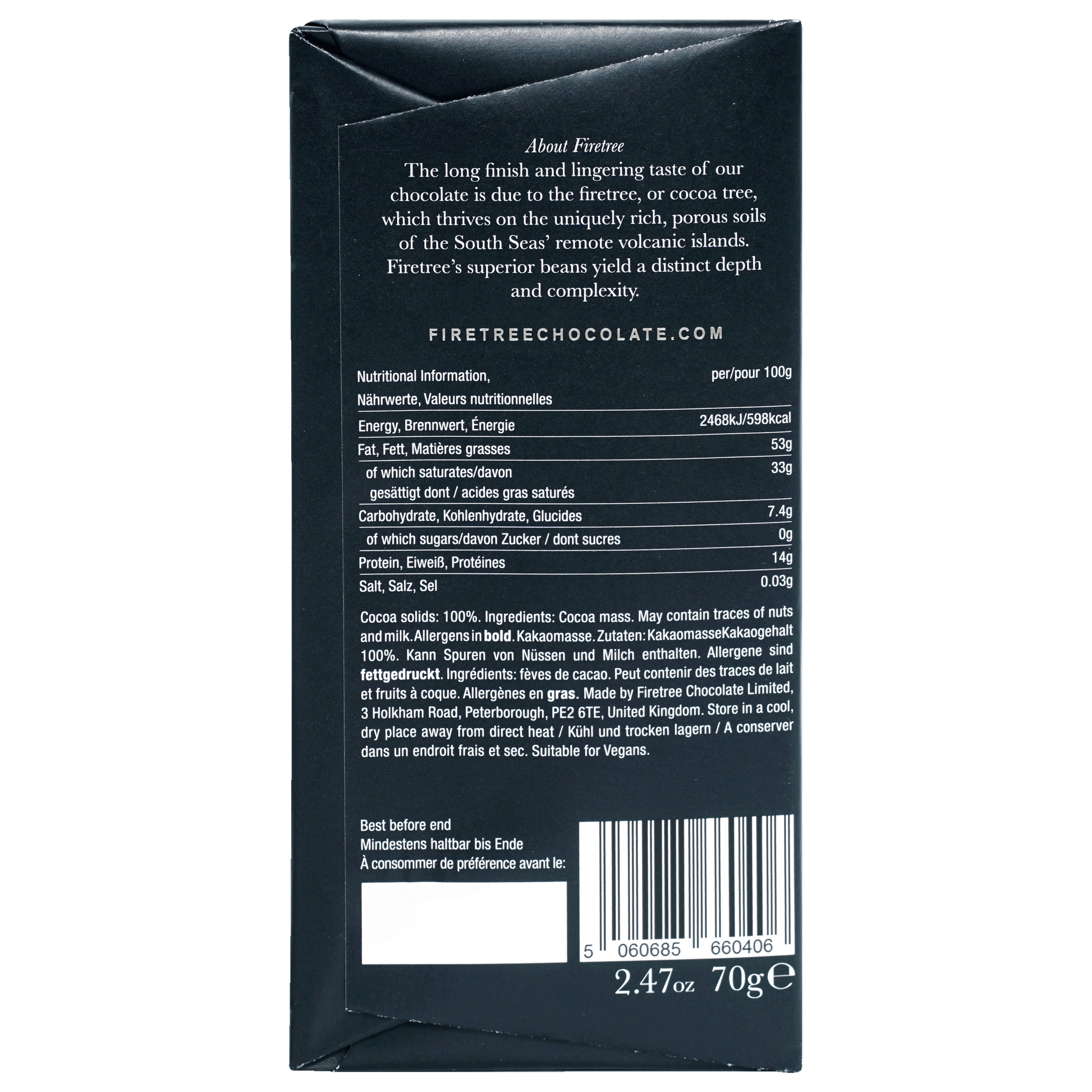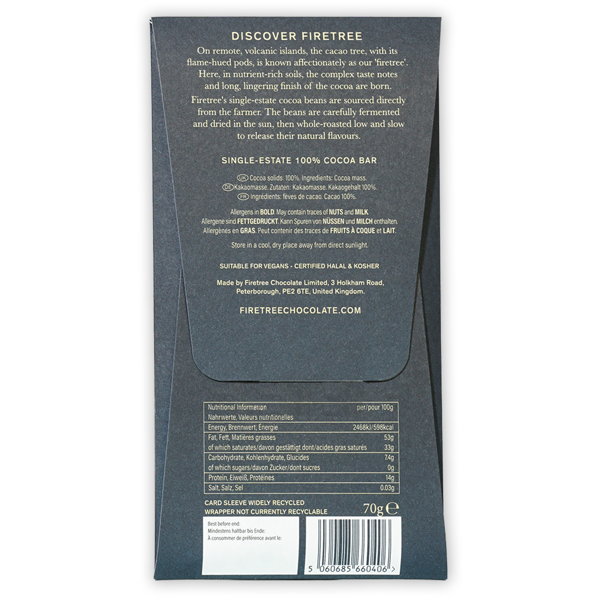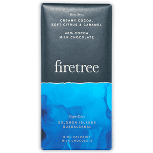 FiretreeFiretree Chocolate is dedicated to crafting rare, single estate chocolate with a true sense of place. They source their cocoa from small, remote volcanic islands in the South Pacific and Madagascar, where the mineral-rich soil creates some of the most distinctive taste notes in the world. The name “Firetree” comes from the cocoa tree’s flame-colored pods, and from its base in Cambridgeshire, England, the company follows a meticulous bean-to-bar process to preserve each origin’s character. Committed to fairness and sustainability, Firetree works directly with farmers or their co-ops, paying premiums that support communities and protect landscapes.