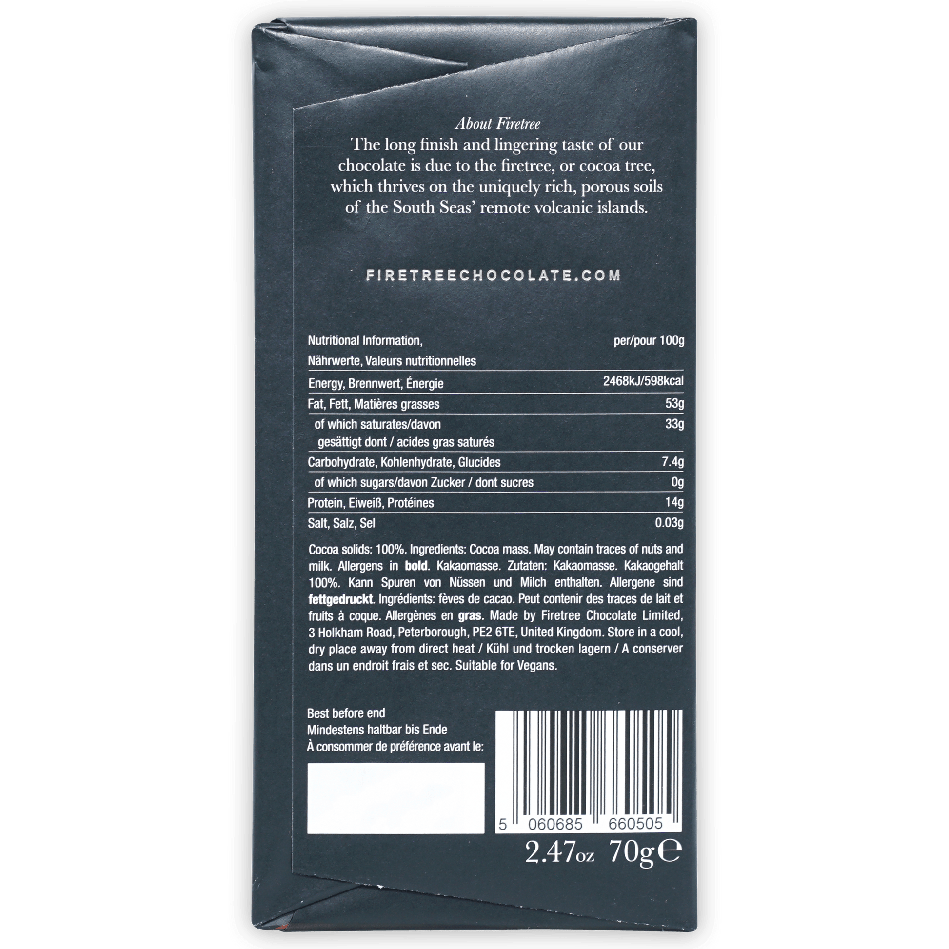 Ingredients: cocoa mass (100% cocoa solids)