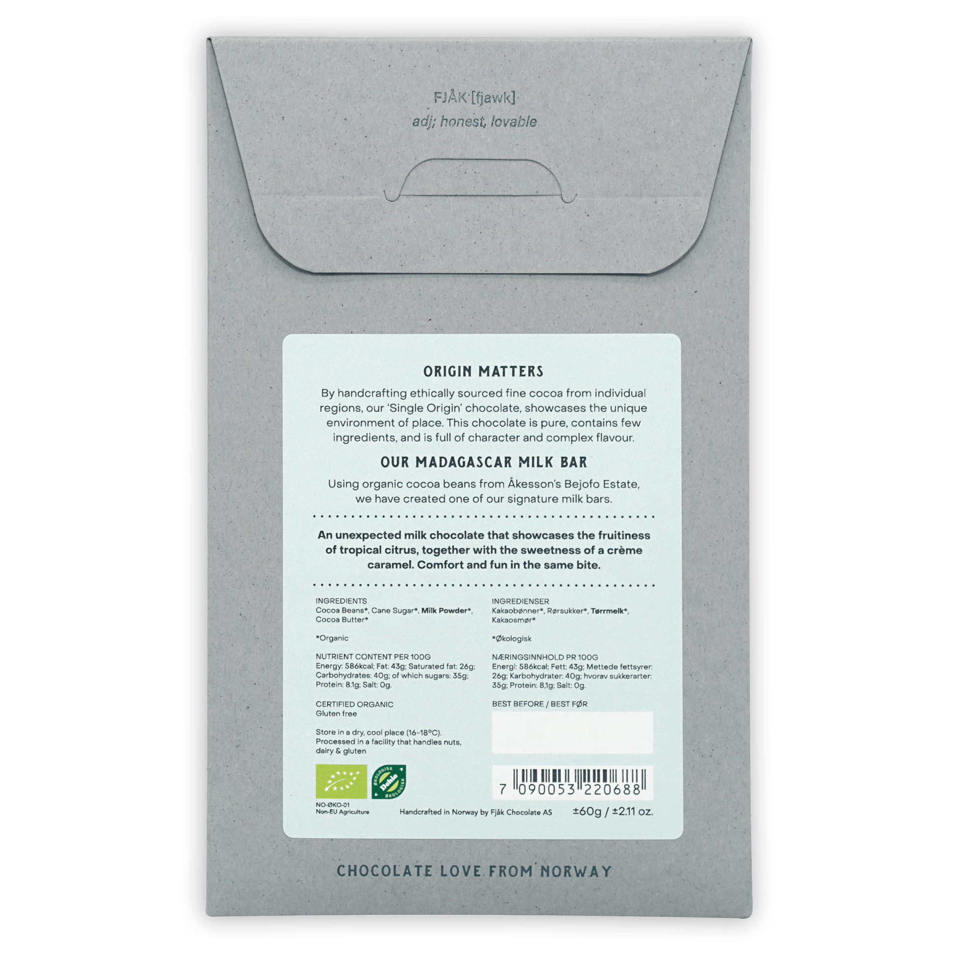 Certified Organic – Their cocoa beans come from Åkesson’s plantation located in the Sambirano Valley, in the North-West of Madagascar, The Ambolikapiky Plantation is part of Bertil Åkesson’s 2000ha Bejofo Estate.