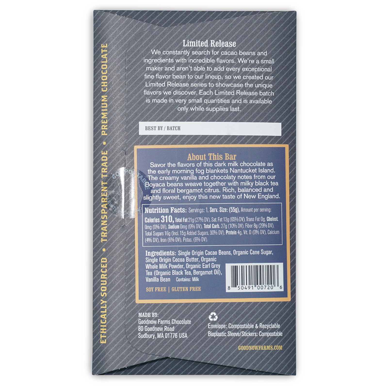 Goodnow FarmsGoodnow Farms chocolate is handcrafted in Massachusetts. All the cacao they use is ethically sourced from small farmers and producers that Tom and Monica have met during their travels throughout Mexico, Central and South America. The cacao is carefully stone ground, and conched in small batches. They also press their own cocoa butter for each bar. They admired the concept of single origin bars and capturing the different taste profiles, and uniqueness through each bar. They discovered their love for real craft chocolate after visiting a vintage shop in Los Angeles. Tom and Monica officially created Goodnow Farms in 2016 but have been crafting their creations since 2008. The pair works hard to engage with the communities where they receive their cacao from to ensure farmers are fairly compensated and practice sustainable farming.