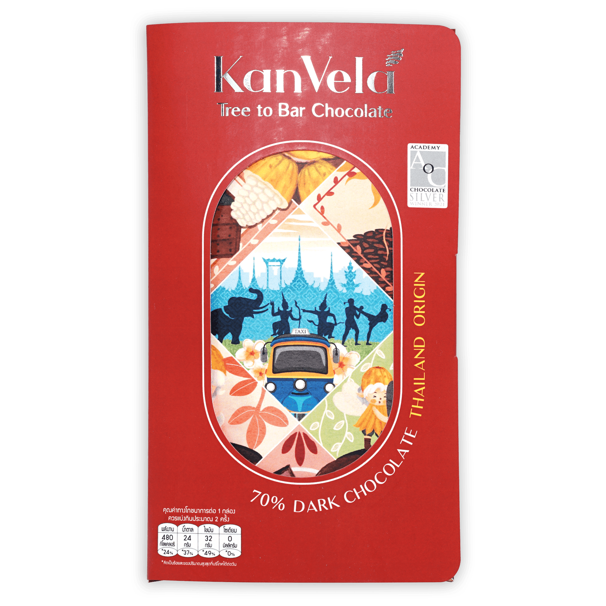 KanVelaKanvela is a tree to bar chocolate maker from Thailand. Particular cacao trees strains have been carefully nurtured and cultivated for long term sustainability, and turned into chocolate with unique flavors that highlight local Thai ingredients and flavors. The result is a range of chocolate products that are both beautifully presented and full of flavor, embodying the timeless elegance of KanVela Craft Chocolate. KanVela has won many awards worldwide, including the International Rising Star Award from the renowned Academy of Chocolate, UK.
