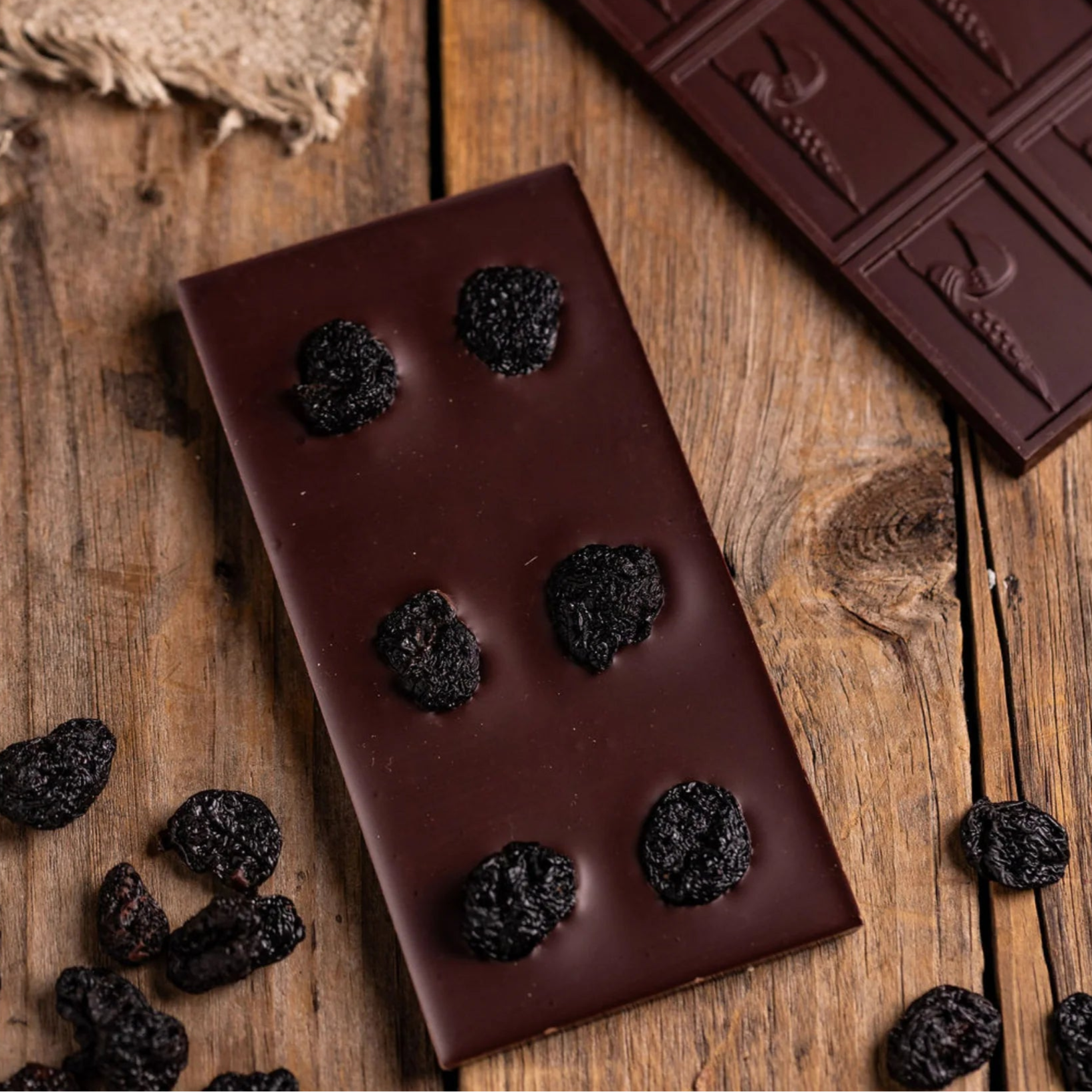 Made with a blend of organic premium cacao beans and sweet dried cherries.