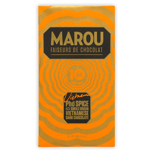 Marou ChocolateMarou Chocolat was started by two Frenchmen Samuel Maruta and Vincent Mourou in Saigon. After a camping trip in Vietnam, that left them venturing onto a cacao farm, they were sold on their next adventure, chocolate. They only had minimal everyday kitchen appliances at the time and started testing how to make chocolate in Sam’s kitchen. They work closely with farmers and slow roast the beans in small batches to get the natural flavors from its terroir and let it do all the work. They are the first bean to bar Vietnamese chocolate makers. Their bars captivate flavors from each region they receive their cacao beans from.