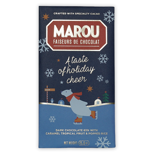 Marou ChocolateMarou Chocolat was started by two Frenchmen Samuel Maruta and Vincent Mourou in Saigon. After a camping trip in Vietnam, that left them venturing onto a cacao farm, they were sold on their next adventure, chocolate. They only had minimal everyday kitchen appliances at the time and started testing how to make chocolate in Sam’s kitchen. They work closely with farmers and slow roast the beans in small batches to get the natural flavors from its terroir and let it do all the work. They are the first bean to bar Vietnamese chocolate makers. Their bars captivate flavors from each region they receive their cacao beans from.