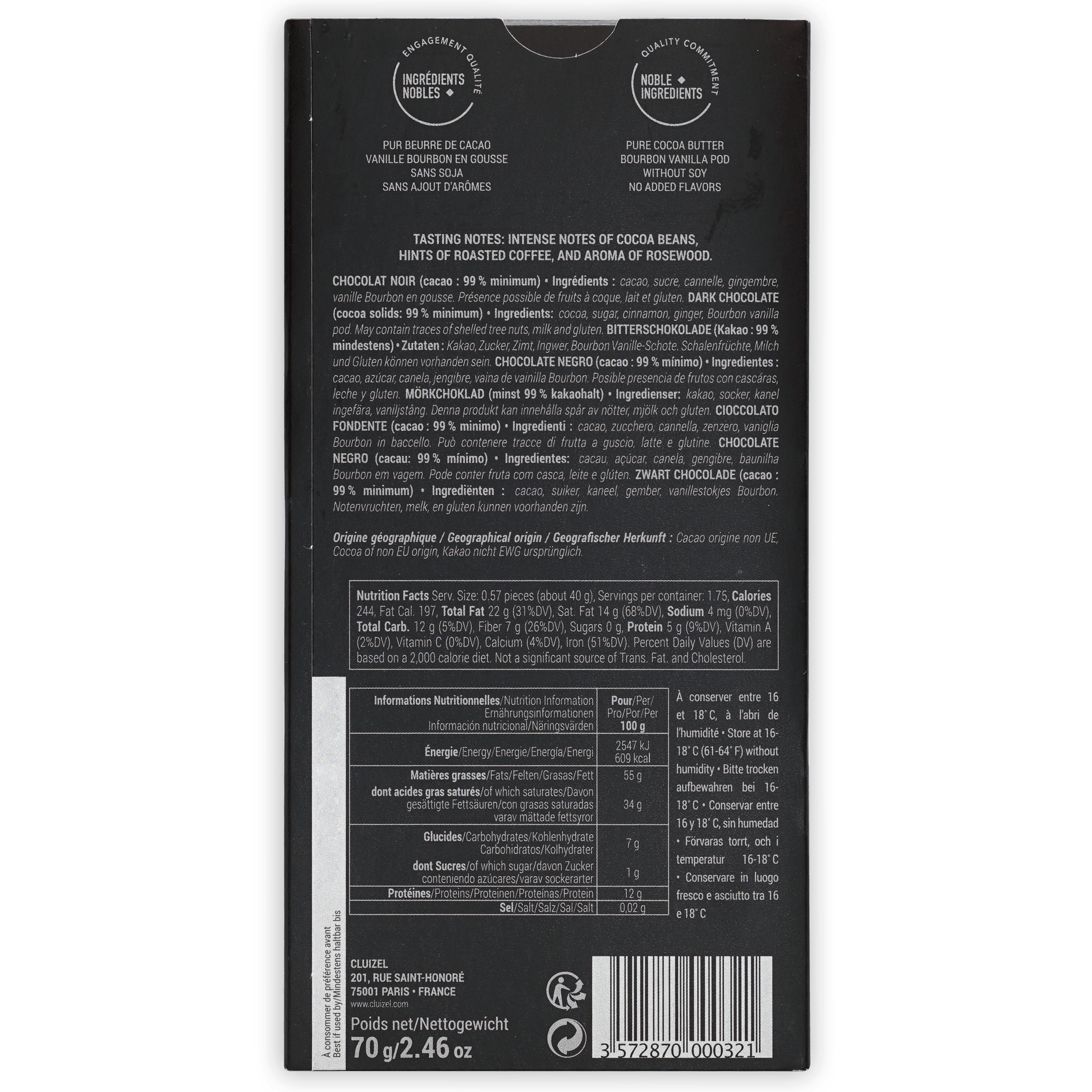Ingredients: cocoa, sugar, ginger, cinnamon, bourbon vanilla pod.