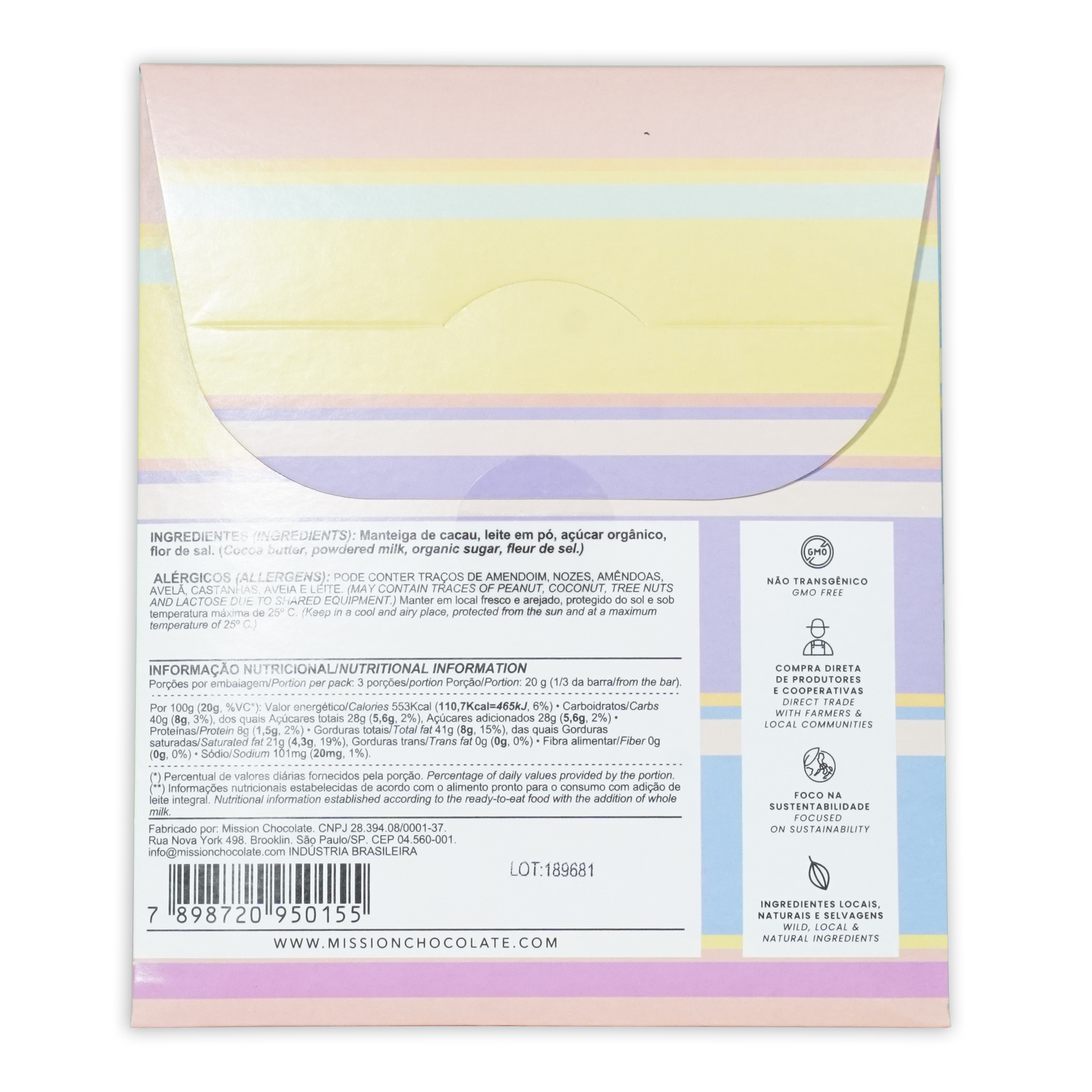 Ingredients: cocoa butter, organic sugar, milk powder, fleur de sel.