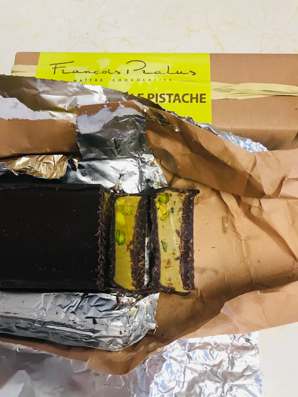 The best pistachio chocolate I’ve ever had. I’m diabetic but it doesn’t make my blood sugar go up. What a treat for diabetic patient to be able to have such chocolate sooo good. I love it, the pistachio crunch and the creamy filling are just yummy! I will buy more. I have to try the other chocolates by francois Pralus. Thumbs up!