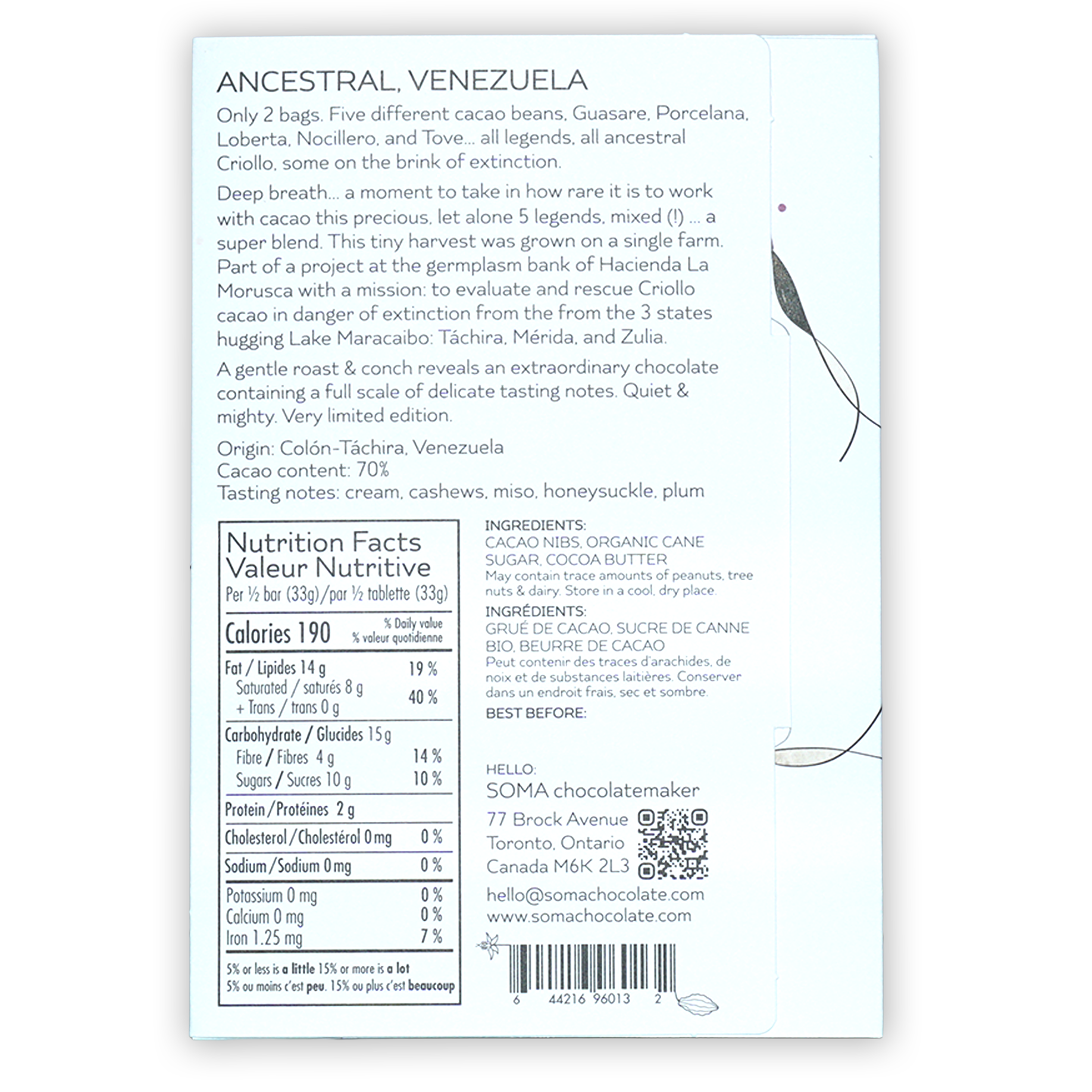 SOMA ChocolatemakerSoma was founded by David Castellan and Cynthia Leung in 2003. A rarity in the industry, Soma are adept at both chocolate making, and also a fantastic chocolatier. At the time, ‘bean to bar’ chocolate wasn’t necessarily even a term! Anybody who knew how to make chocolate were those who worked for big chocolate companies. Soma was one of the first to tackle the micro batch chocolate bar production. Besides their wonderful line of chocolate bars, Soma also uses their chocolate to make ganache for truffles, and other chocolate treats. Soma's high quality chocolate bars have been awarded multiple times over the years. First starting off in a 400 square foot tiny corner of an old whiskey distillery, Soma now has two chocolate factories in Toronto, Canada.