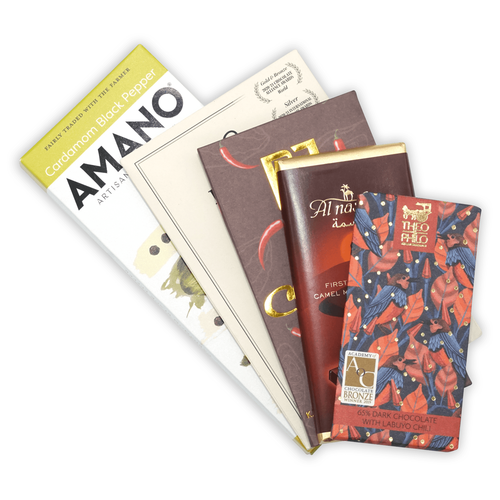 This bundle is packed with some heat! Each chocolate bar in this bundle is created with different peppers for an explosion of flavors for those looking for chocolate with a kick!