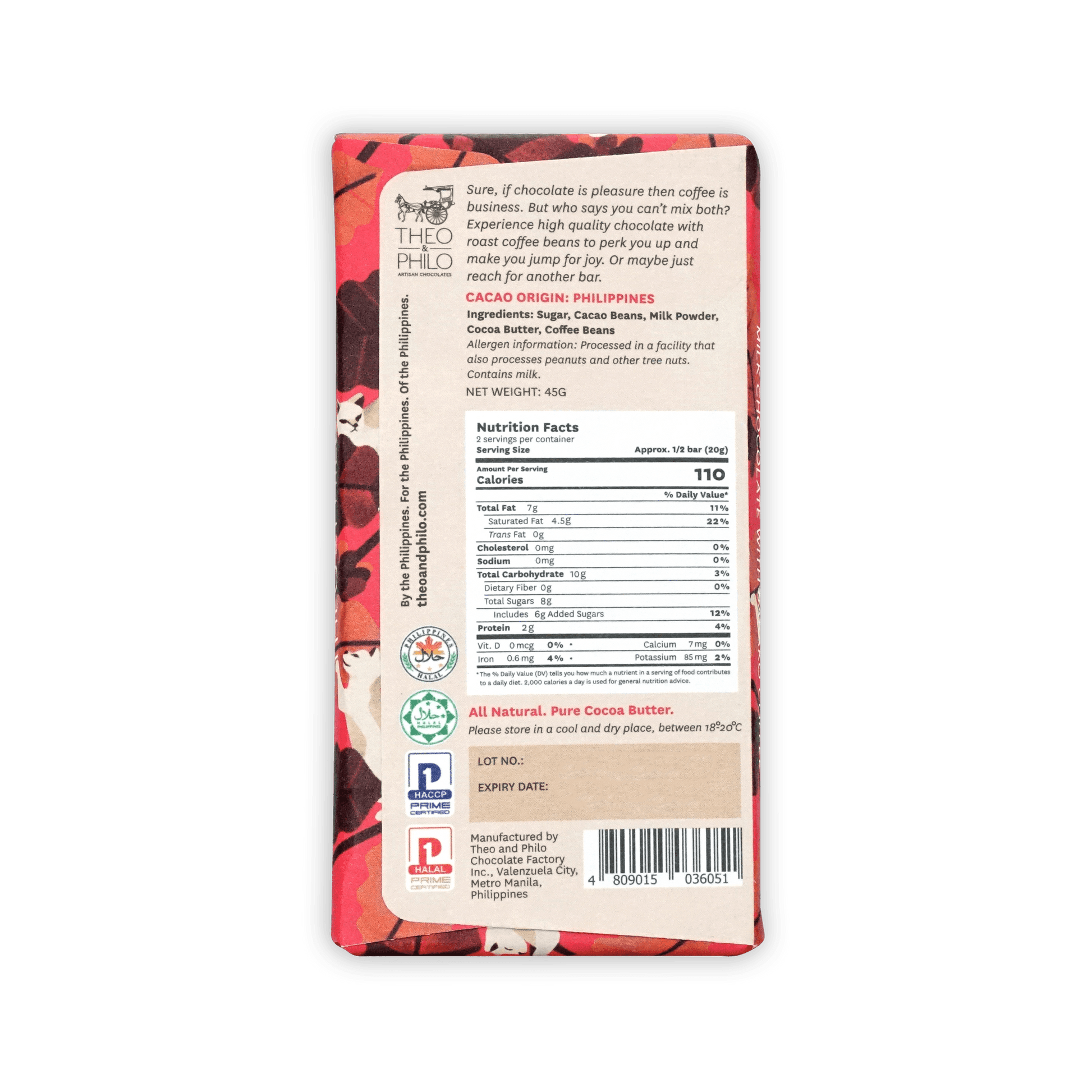 Theo & Philo Milk Chocolate w/ Barako Coffee (Best By: 11/03/25)