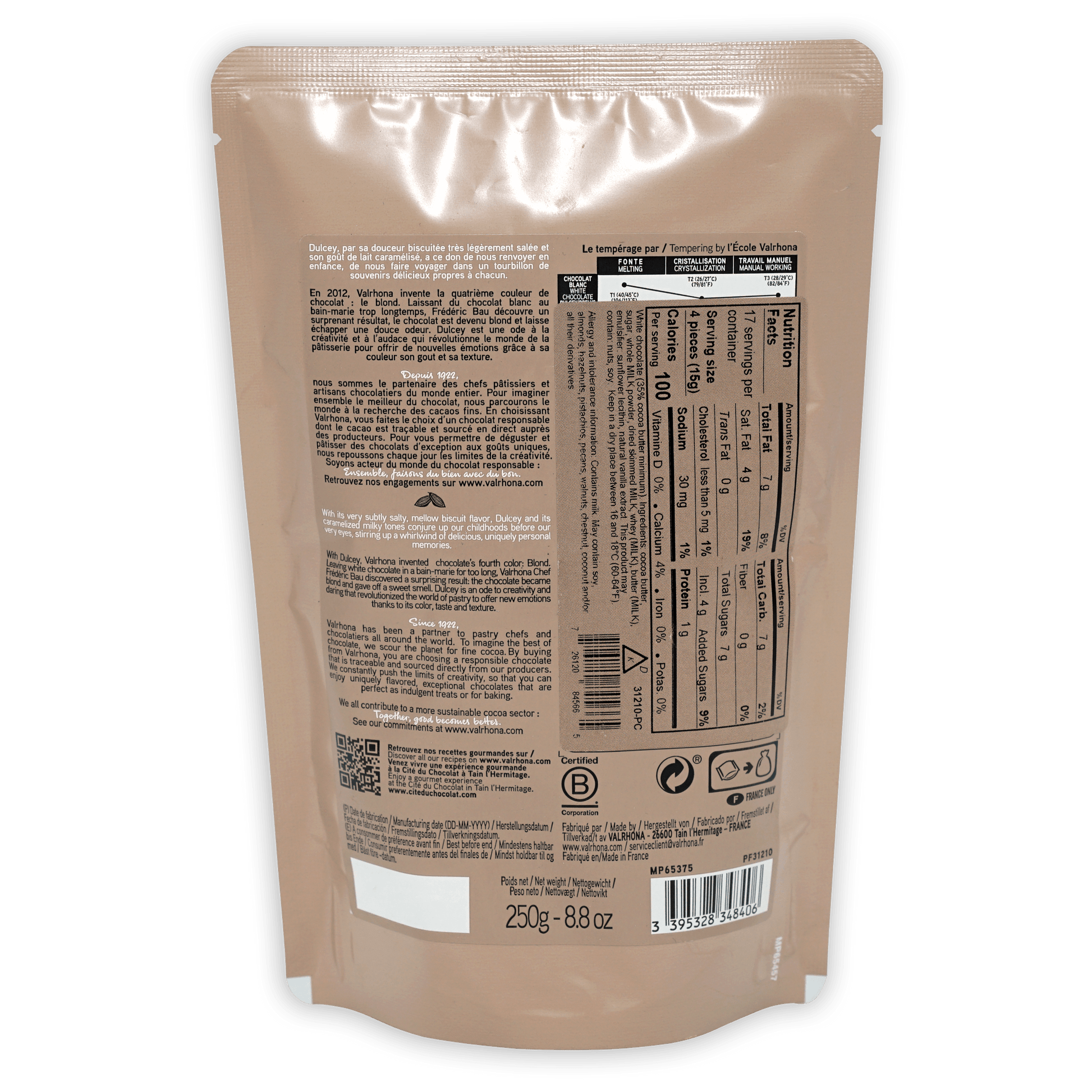 With Dulcey, Valrhona invented chocolate's fourth color: Blond. Leaving white chocolate in a bain-marie for too long, Valrhona Chef Frédéric Bau discovered a surprising result: the chocolate became blond and gave off a sweet smell. Dulcey is an ode to creativity and daring that revolutionized the world of pastry to offer new emotions thanks to its color, taste, and texture.