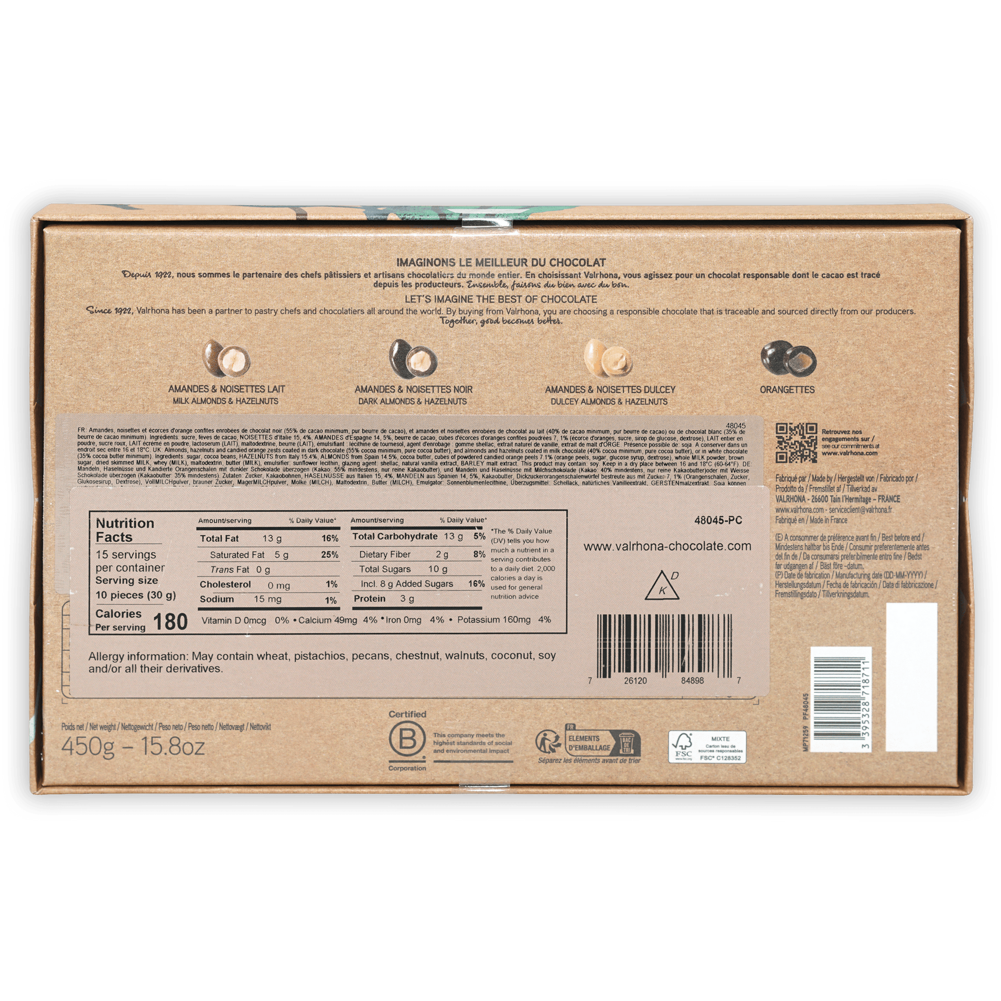 Valrhona Equinoxe Dark, Milk, Dulcey Nuts & Orangettes Collection Gift Box (1 lb)